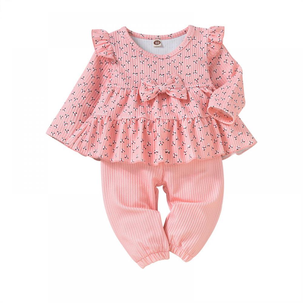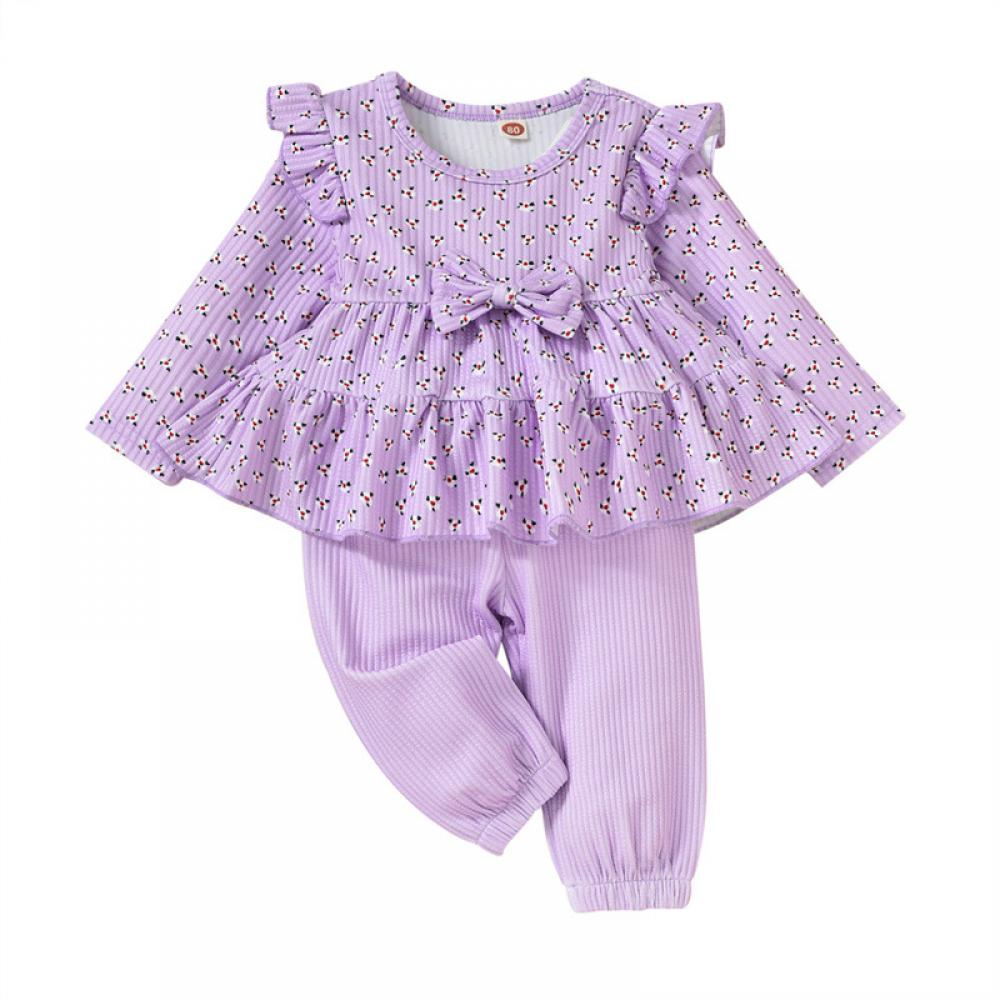 1-4T Girls Spring Autumn Bow Floral Top and Pants Set Toddler Girl Wholesale Clothing
