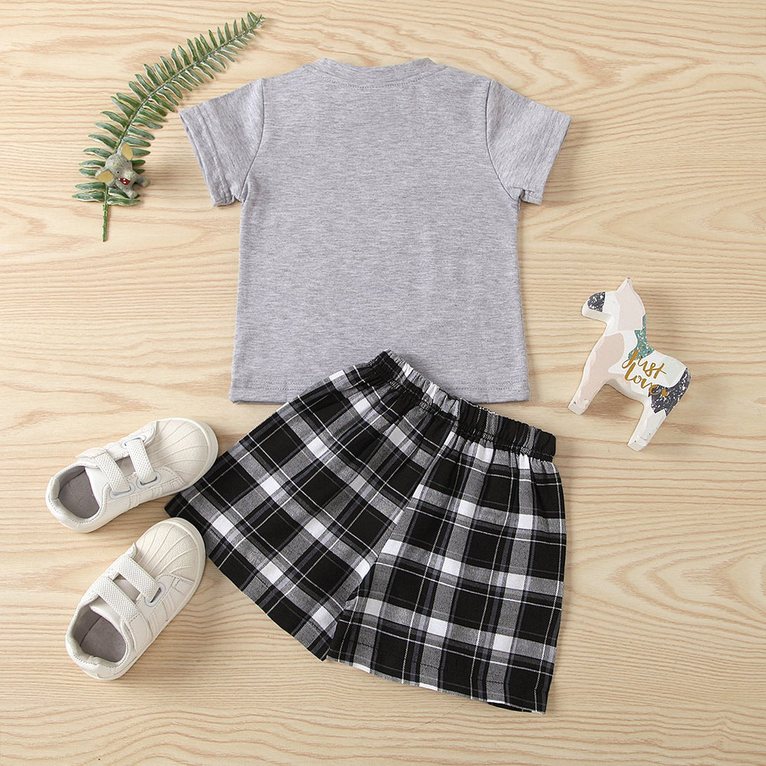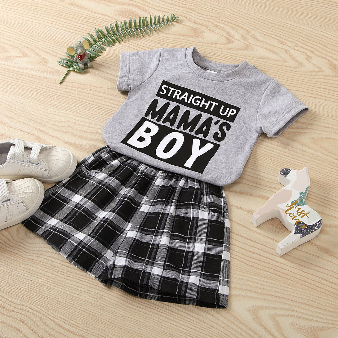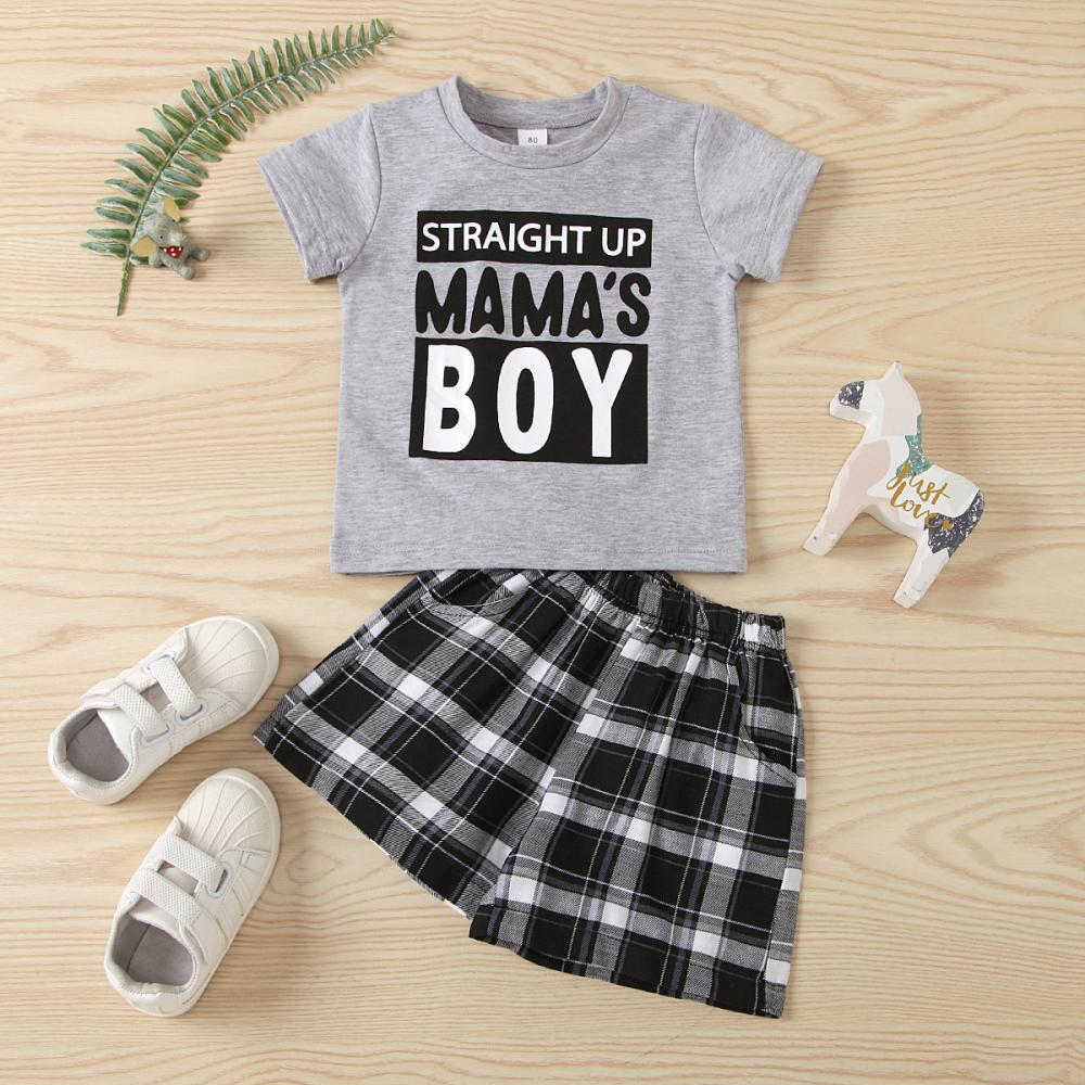 1~4Y Summer Letter Suit Summer Men's Cotton T-Shirt Mother's Day Plaid Suit Wholesale Kids Clothes