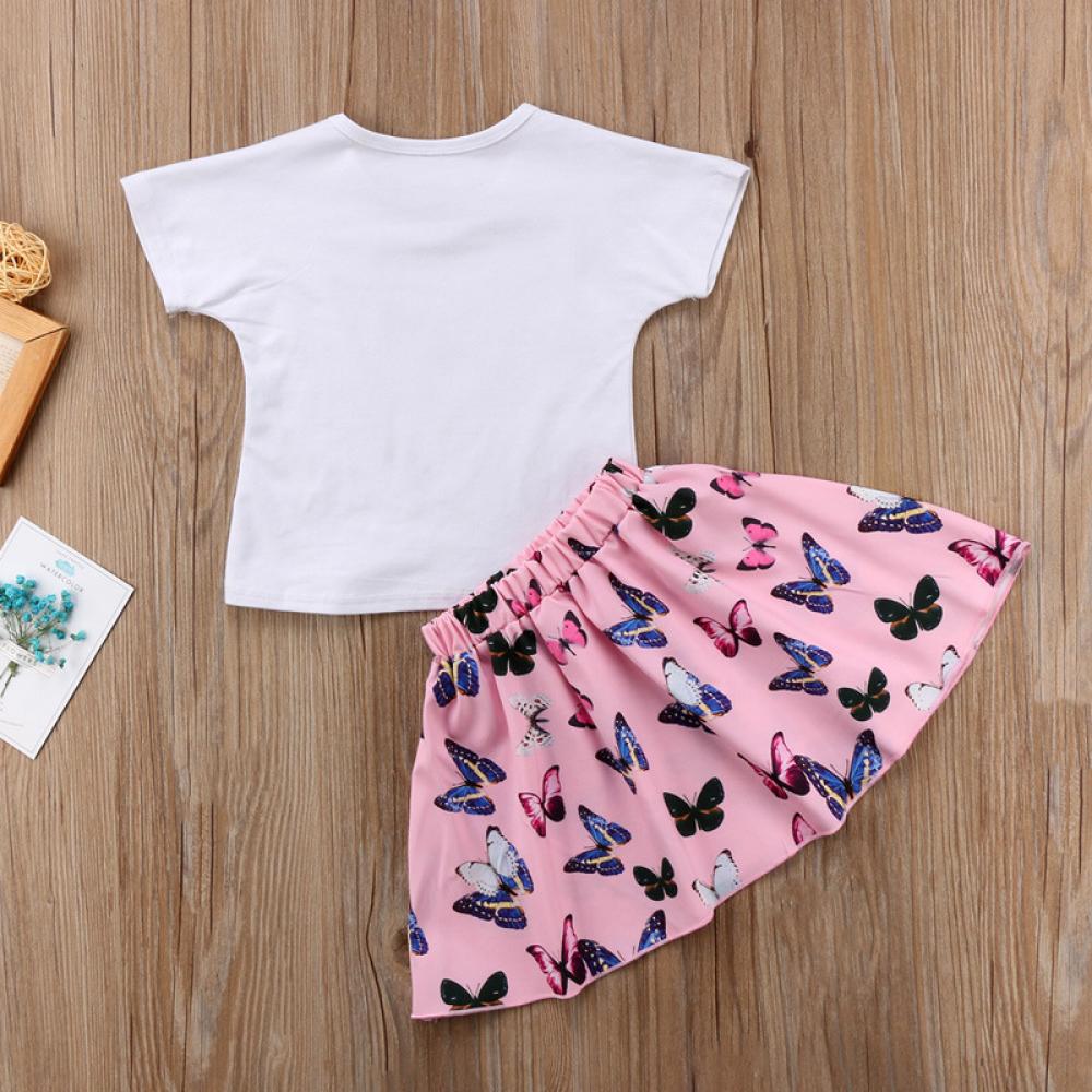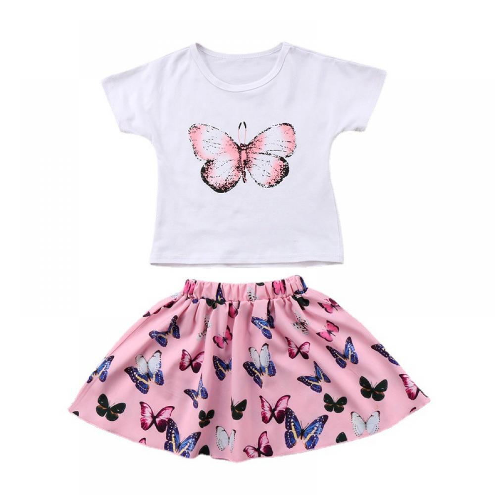 1-6Y Toddler Girls Summer Korean Girls Butterfly Printed Short Sleeve Top and Skirt Two-piece Set Wholesale Kids Clothing