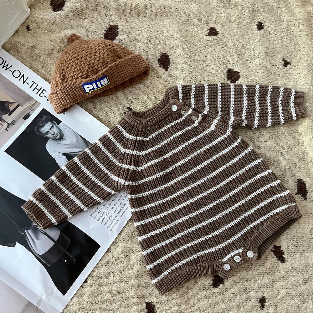 Autumn and Winter Baby Bodysuit Striped Knitted Romper Wholesale Baby Clothes
