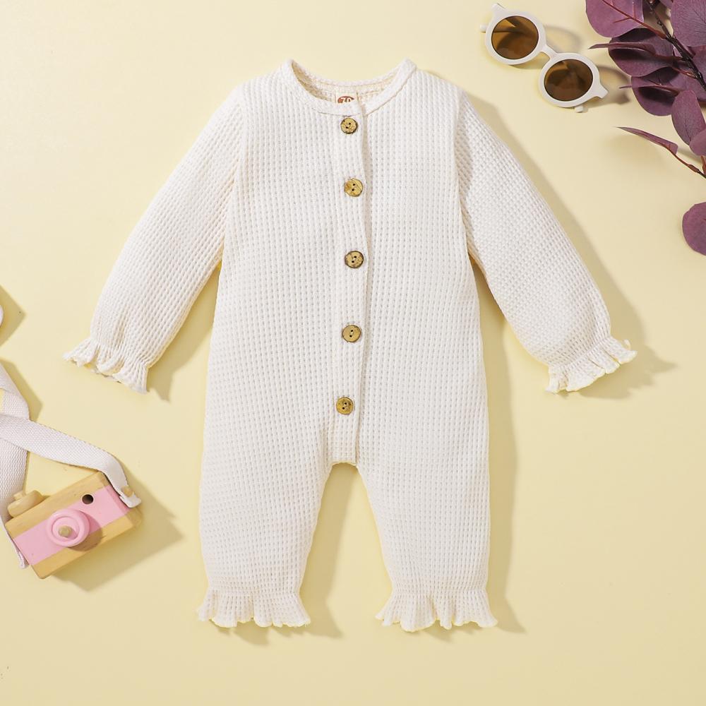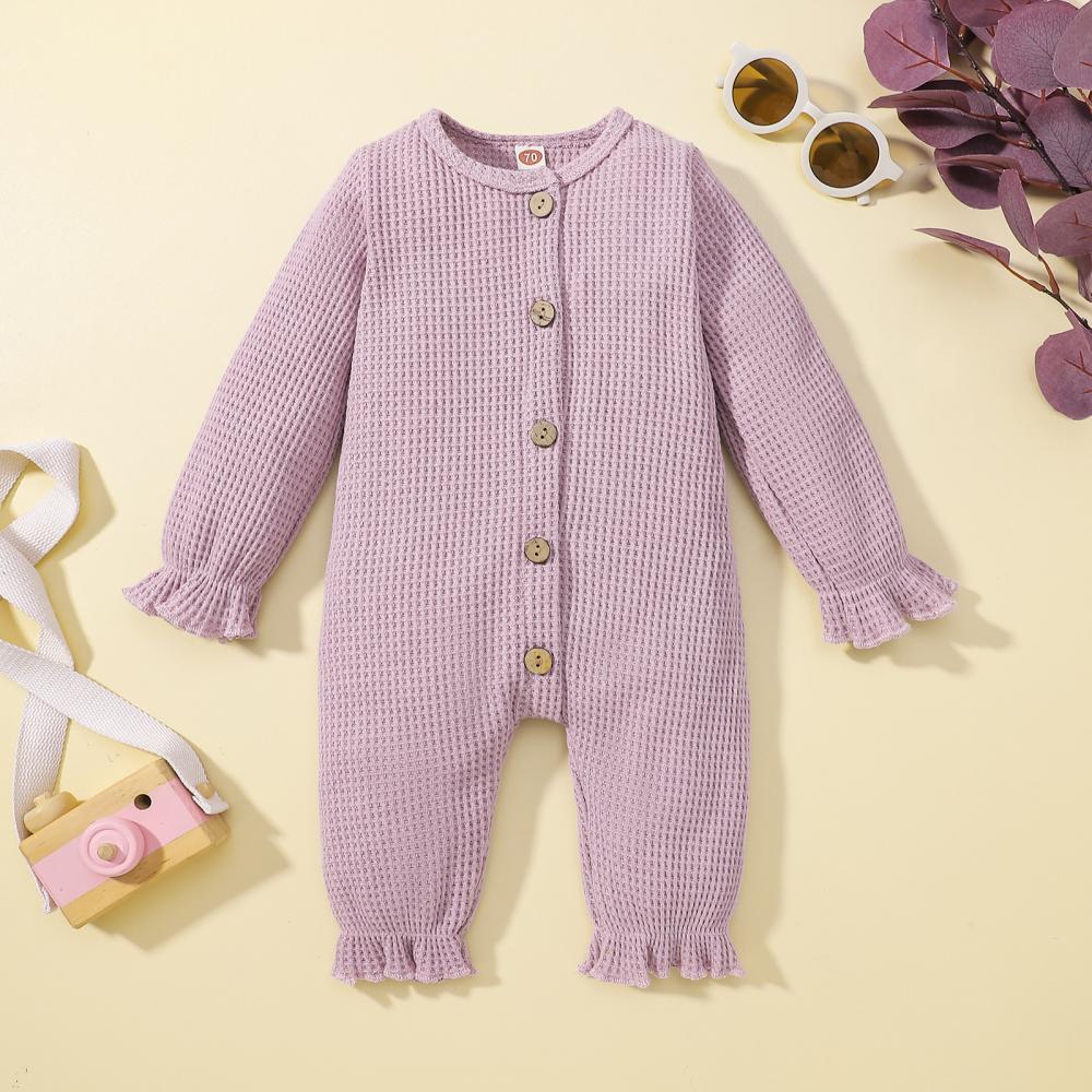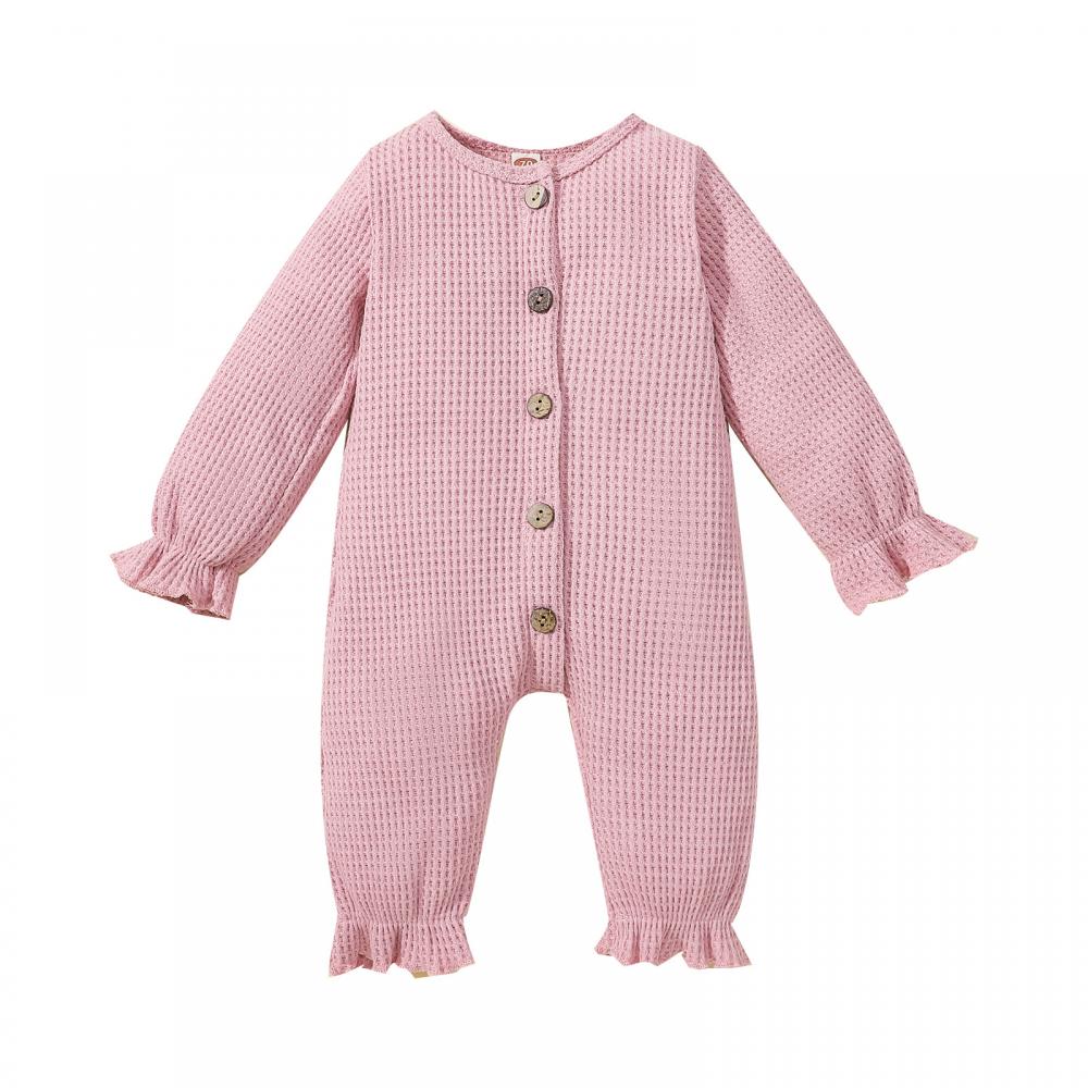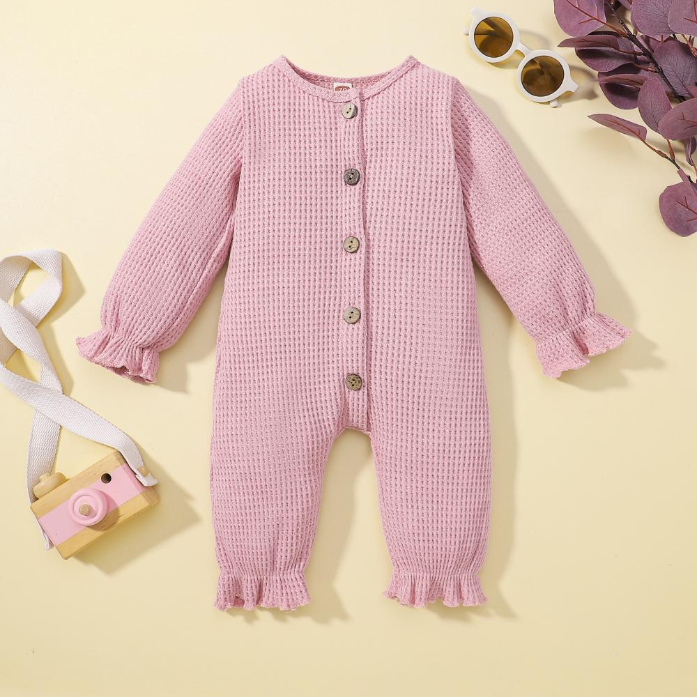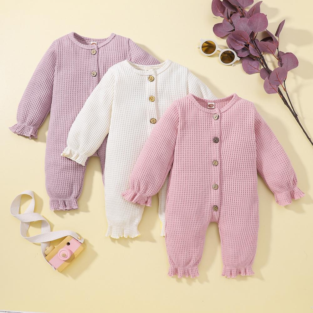 Autumn and Winter Baby Girl Waffle Cotton Thermal Jumpsuit Wholesale Baby Clothes
