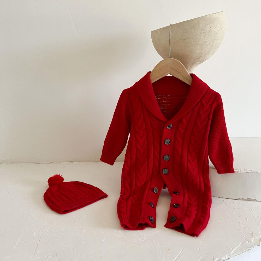 Autumn and Winter Baby Knitted Romper + Hat Wholesale Baby Clothes