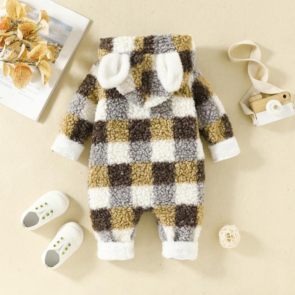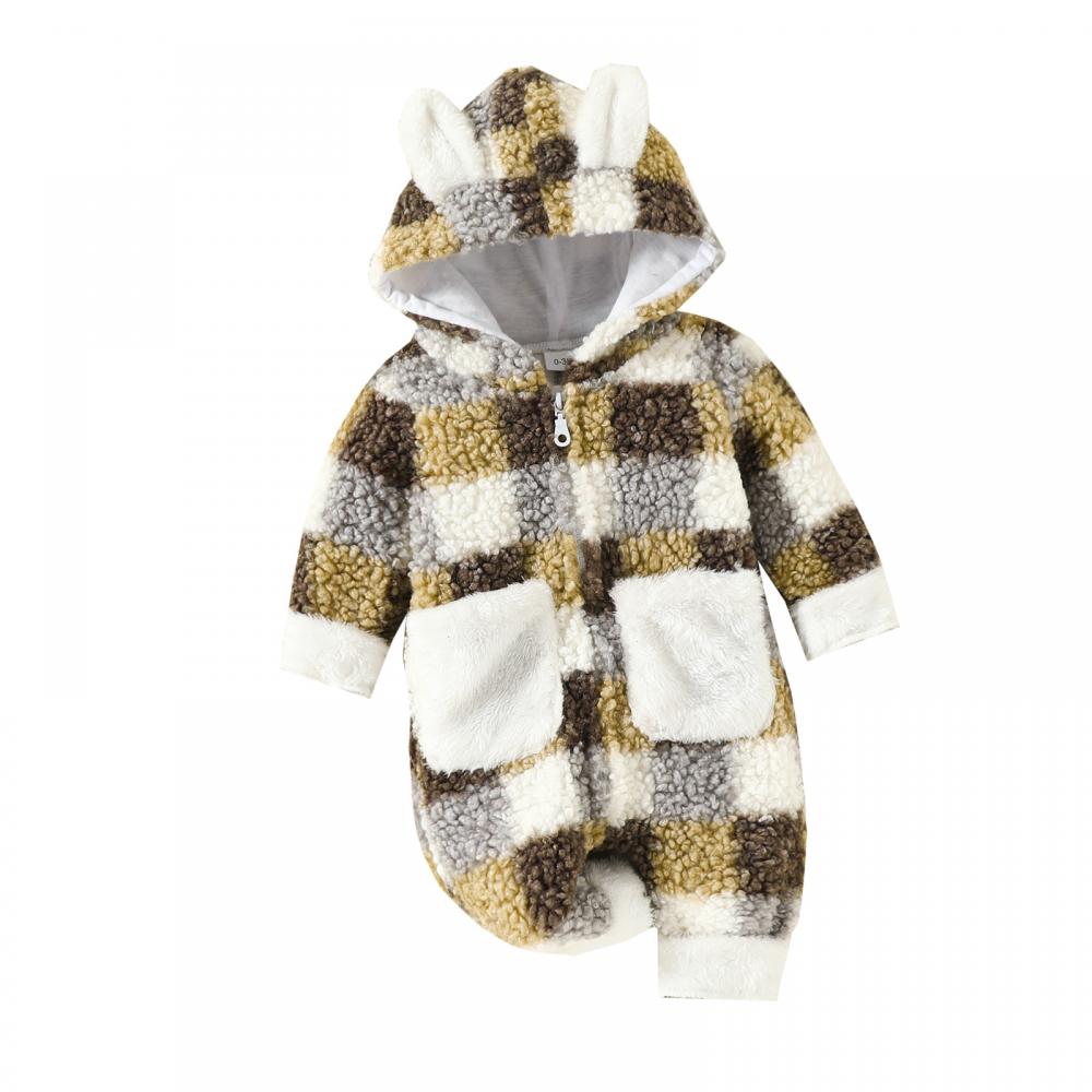Autumn and Winter Baby Plaid Color Matching Zipper Romper Wholesale Baby Clothes