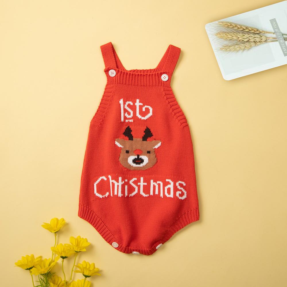 Autumn and Winter Christmas Wool Suspender Print Romper Wholesale Baby Clothes