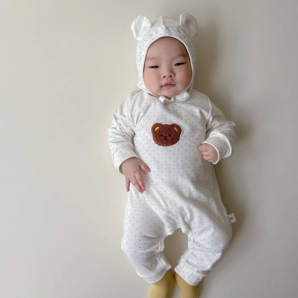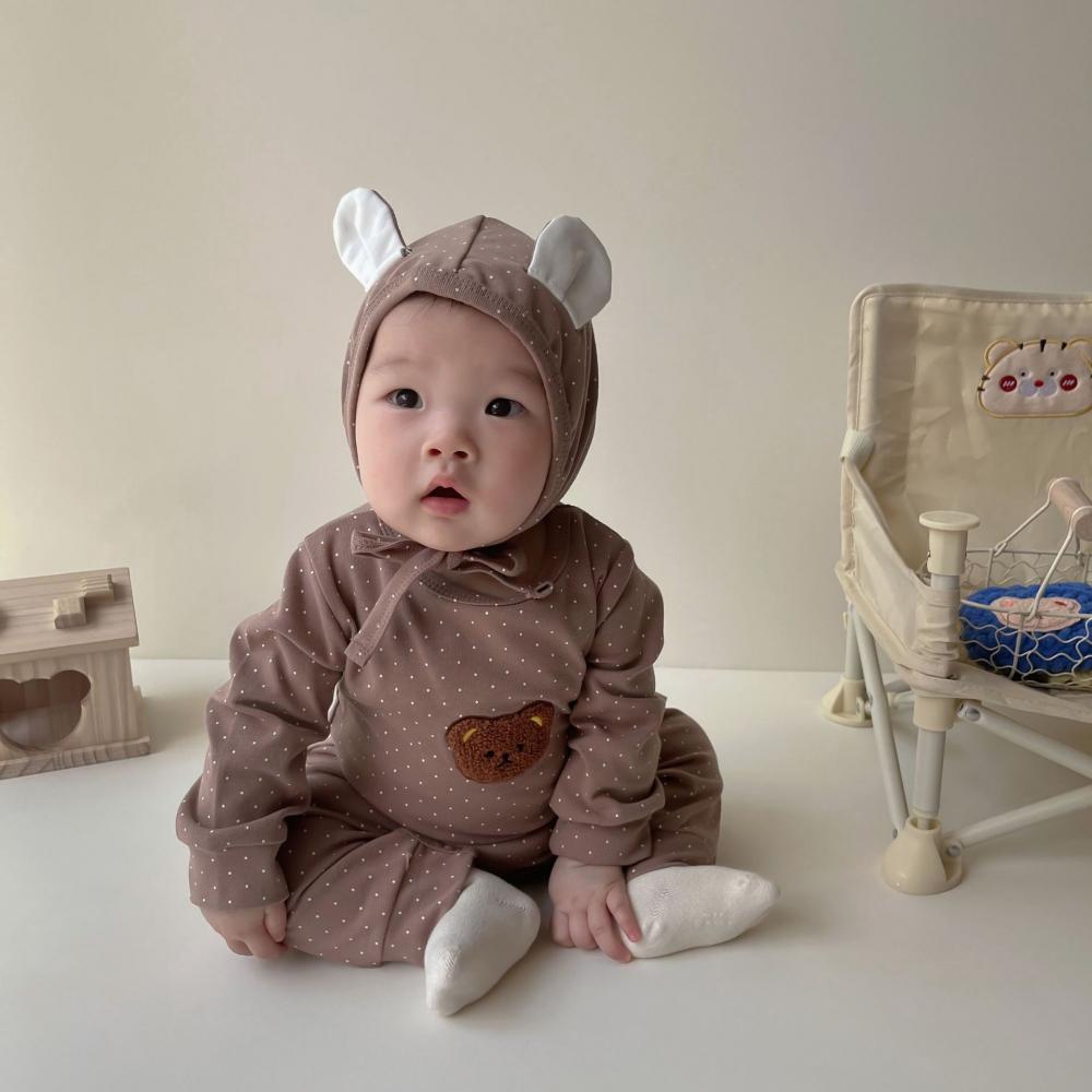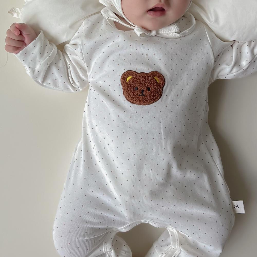 Autumn Baby Bodysuit Dot Print Embroidered Bear Romper Wholesale Baby Clothes