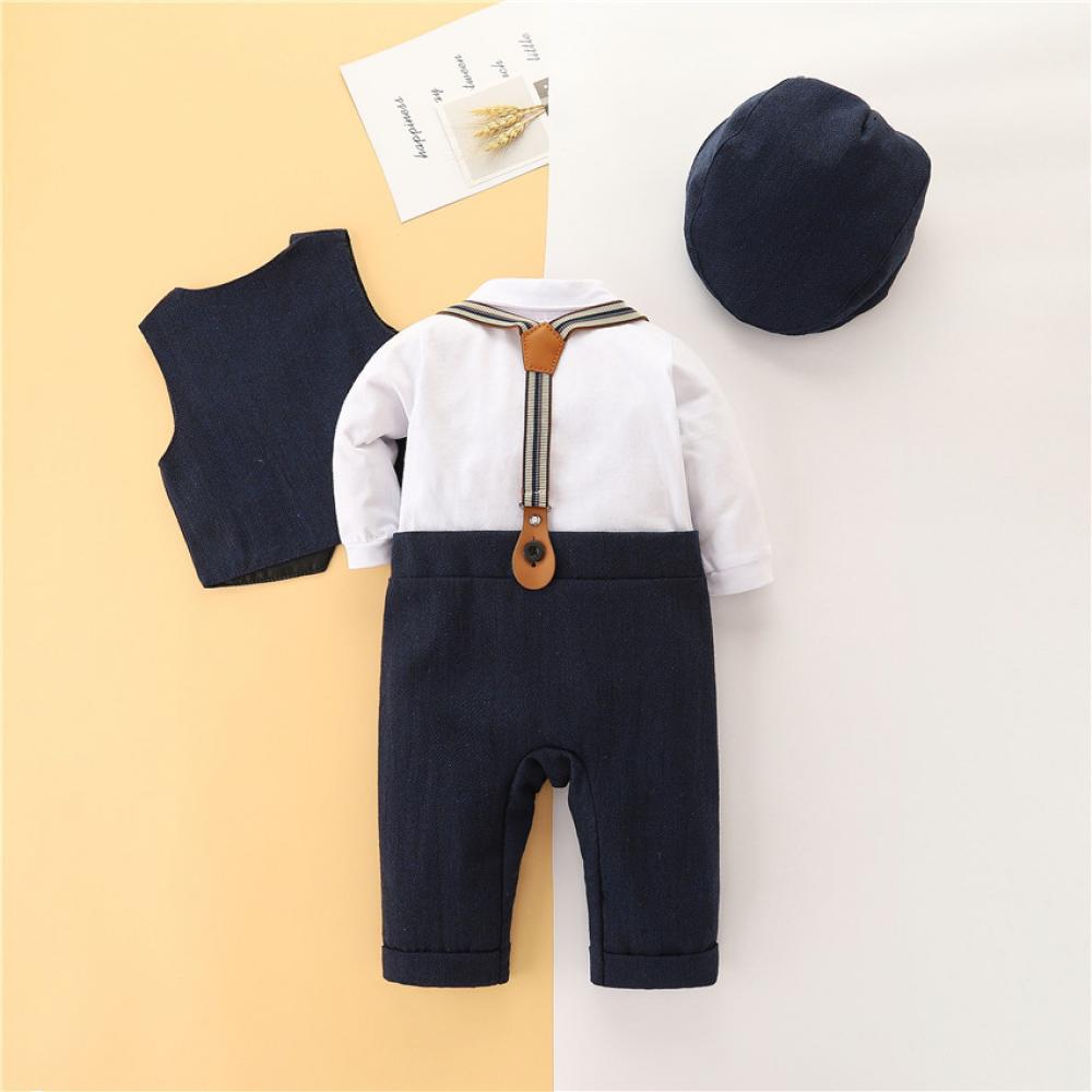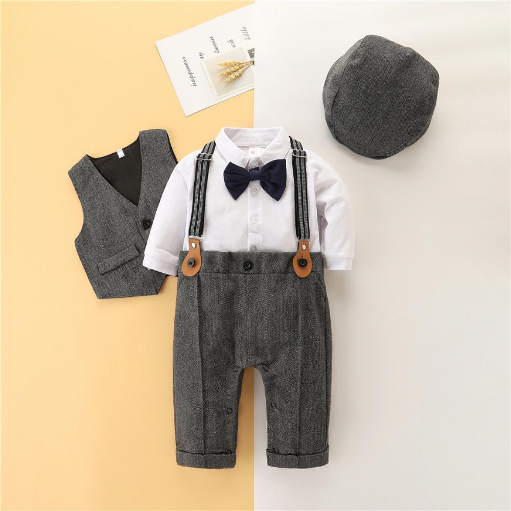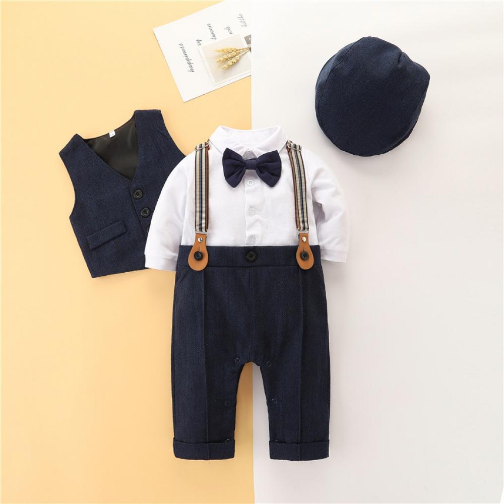 Autumn Baby Boy New Vest + Hat +Long-sleeve Top + Suspender Trousers Set Wholesale Baby Clothes