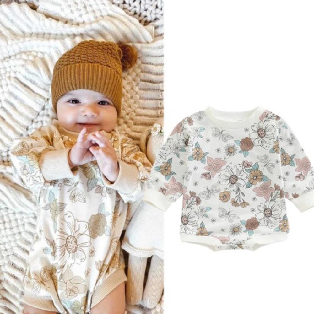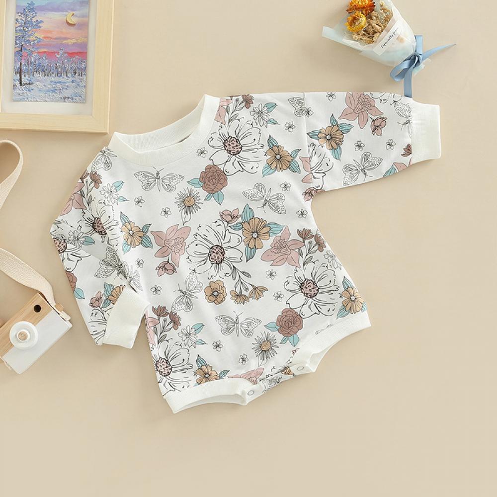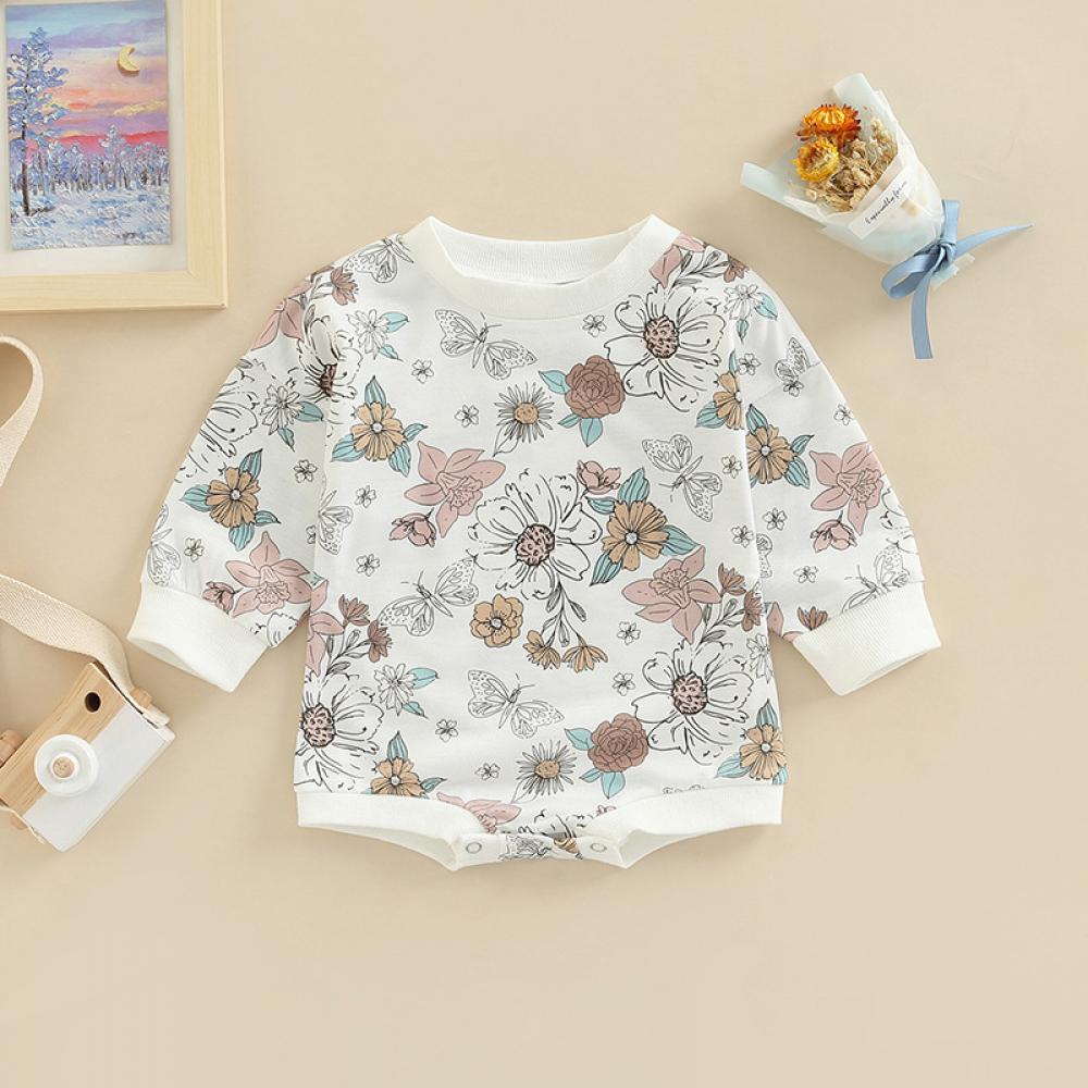 Autumn Baby Flower Print Romper Wholesale Baby Clothes