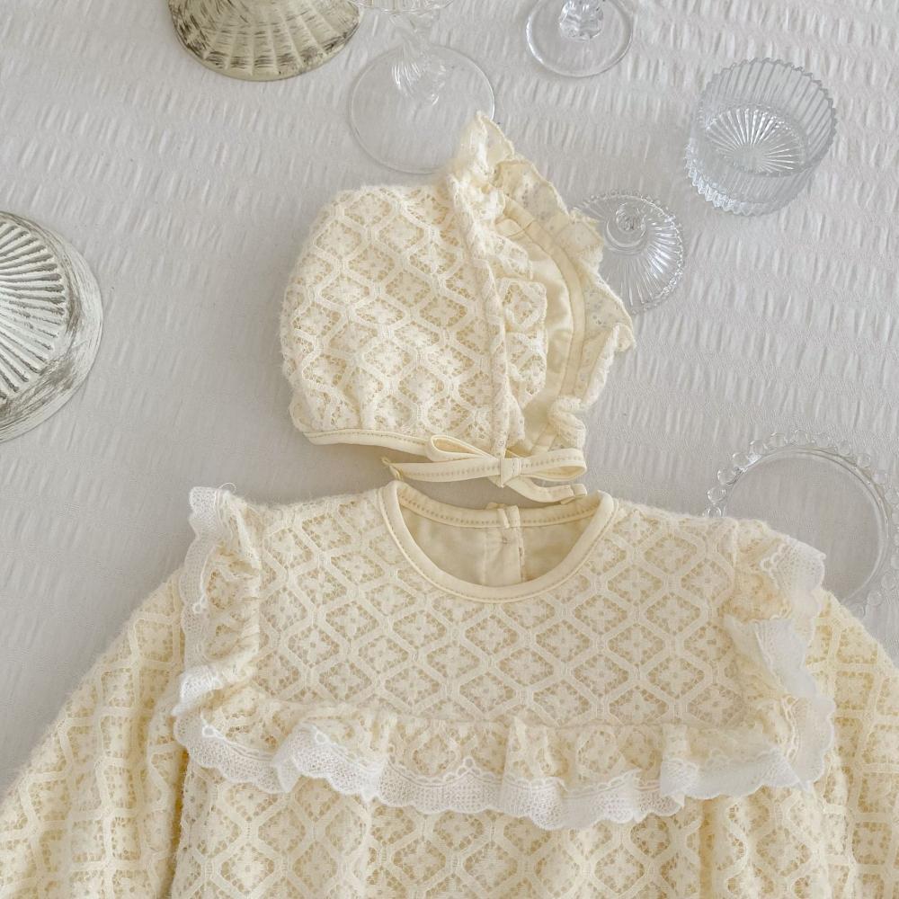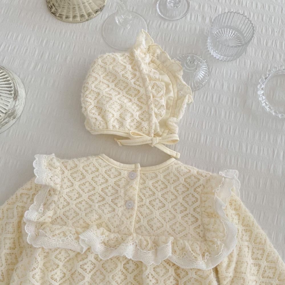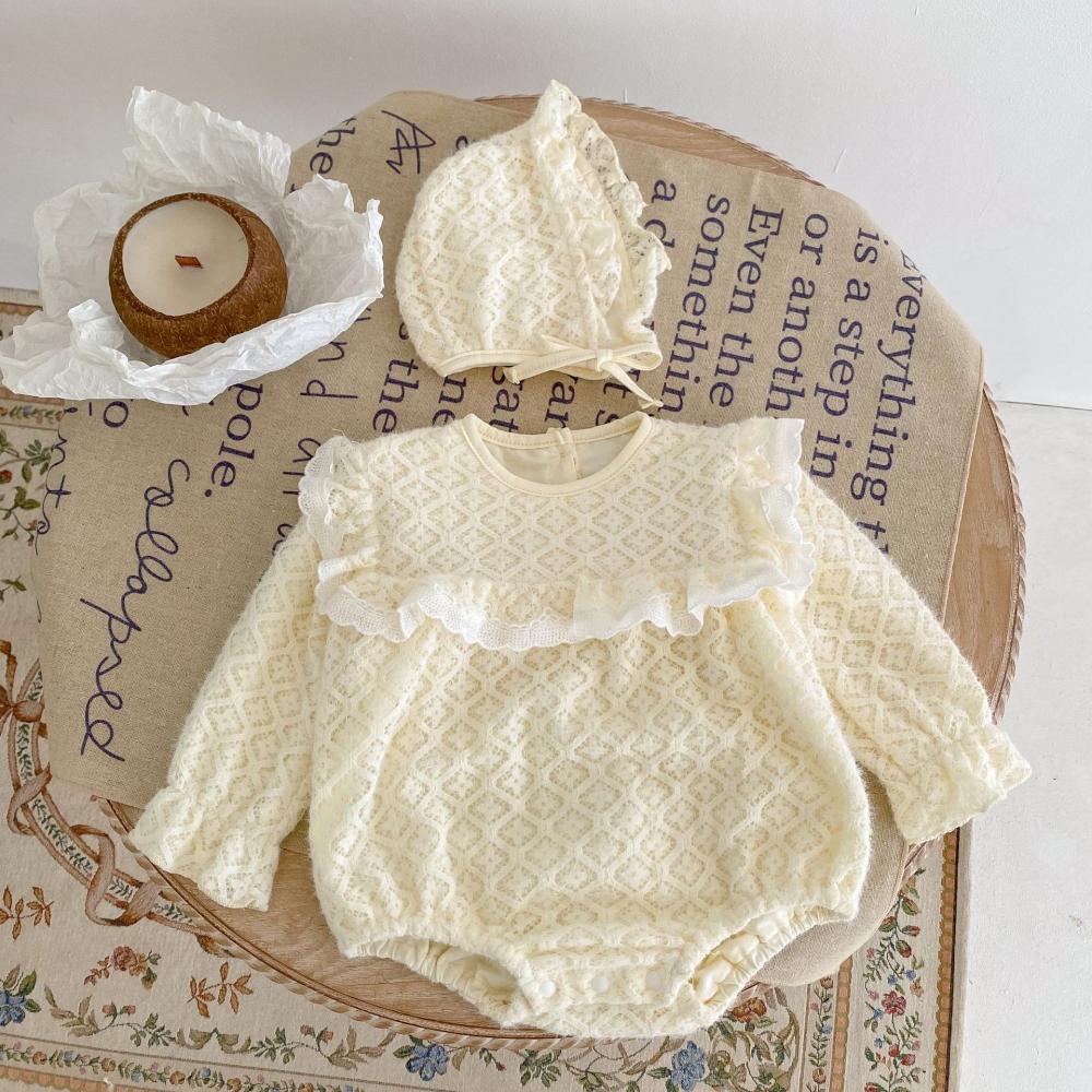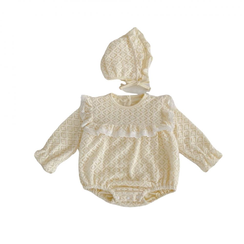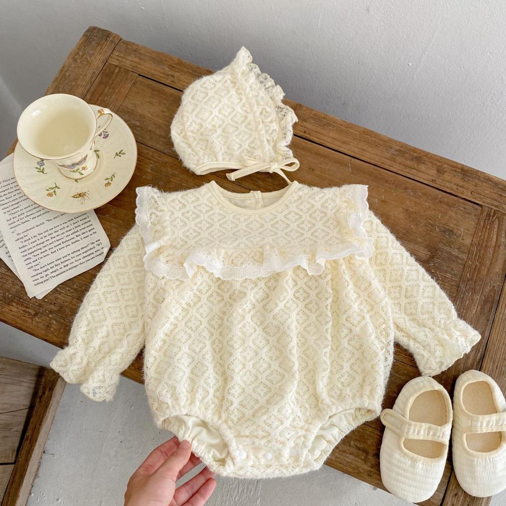 Autumn Baby Girl Lace Long-sleeved Romper + Hat Wholesale Baby Clothes