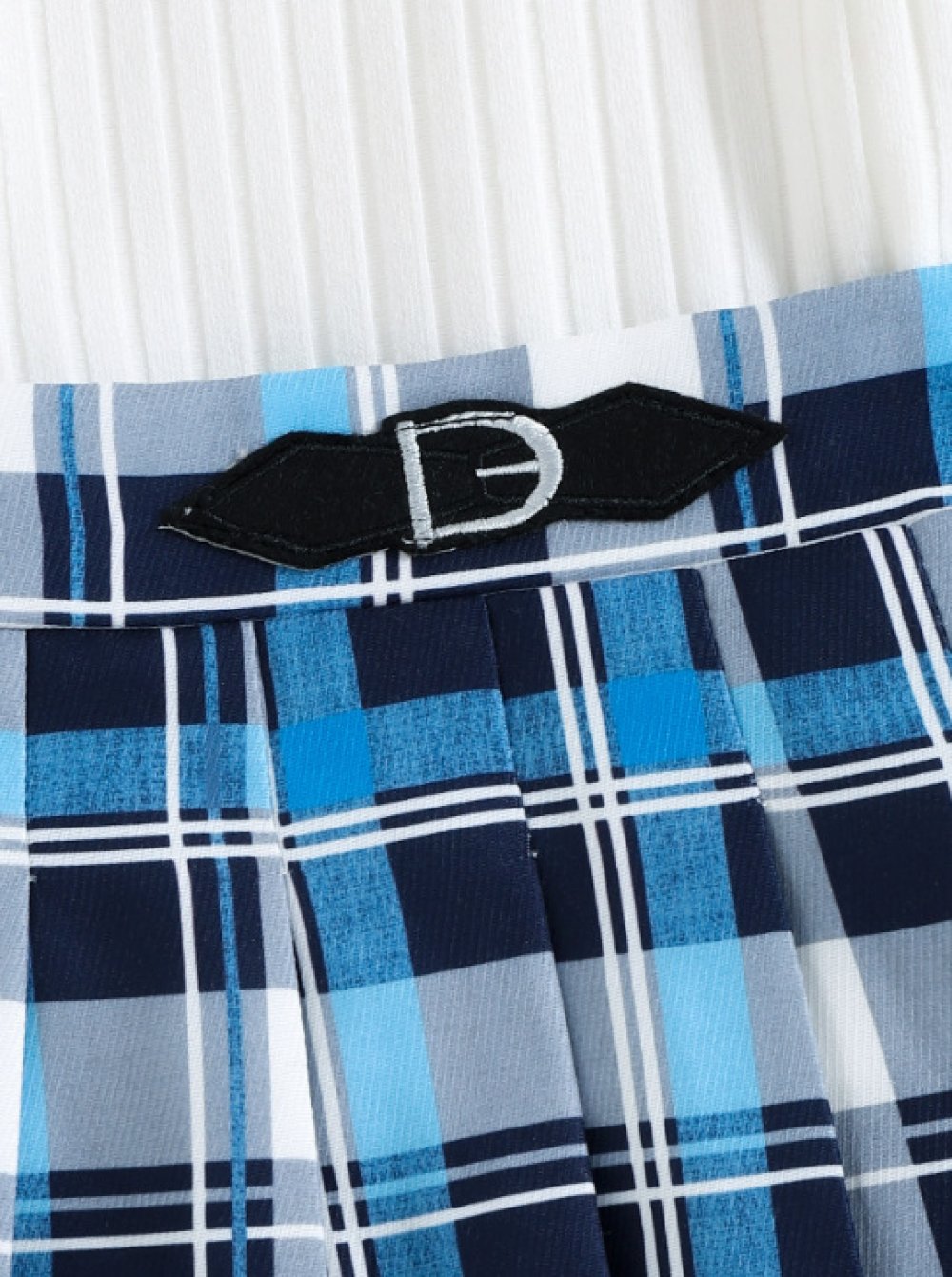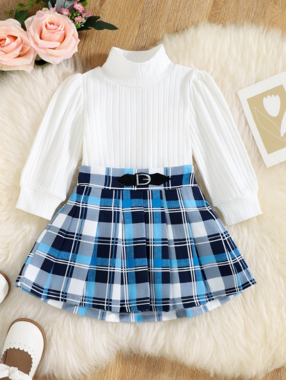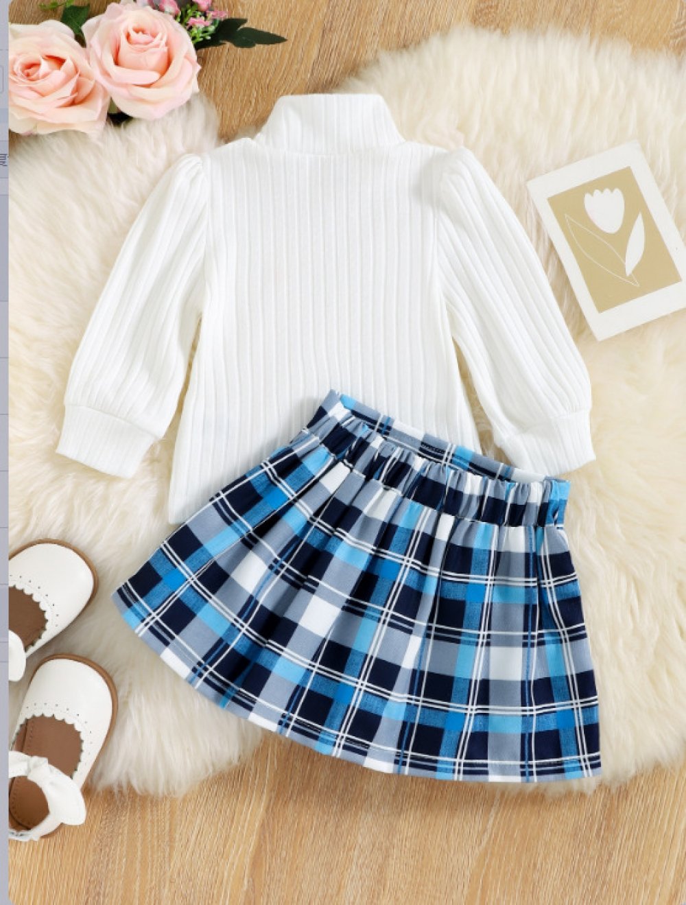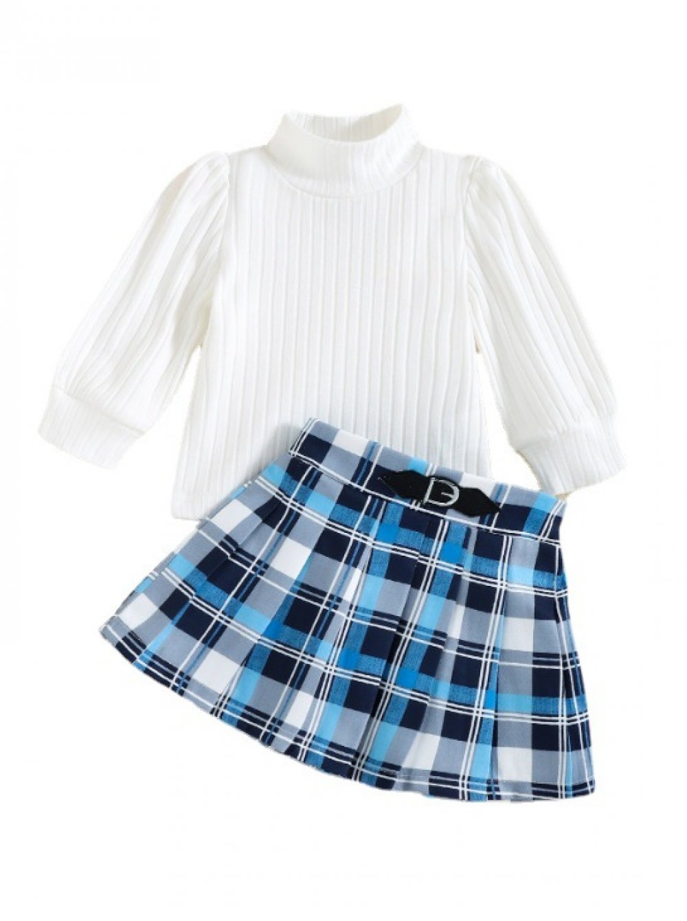 Autumn Baby Girls Pit Strip Top + Plaid Skirt Set Wholesale Girls Clothes