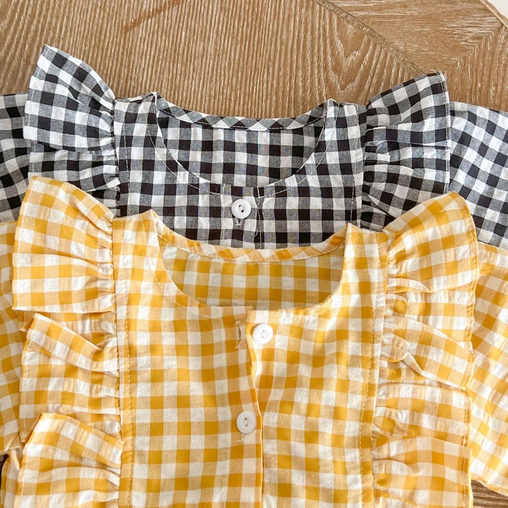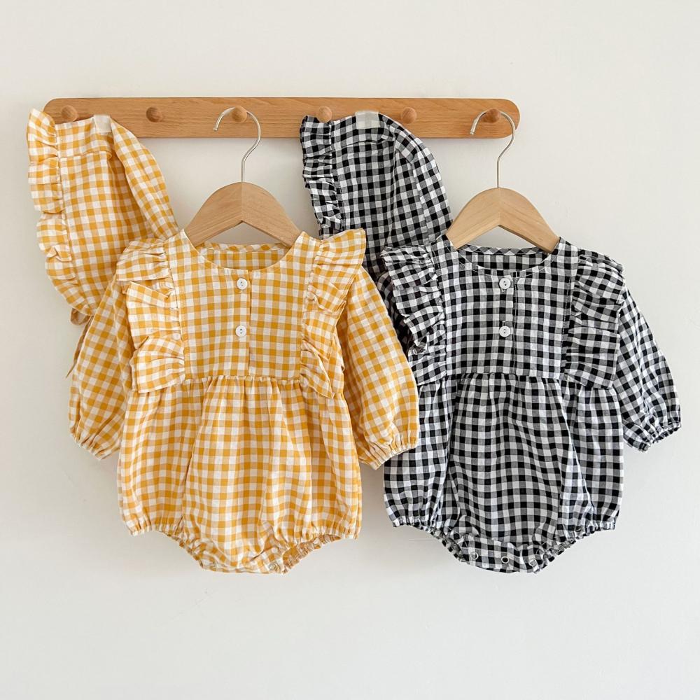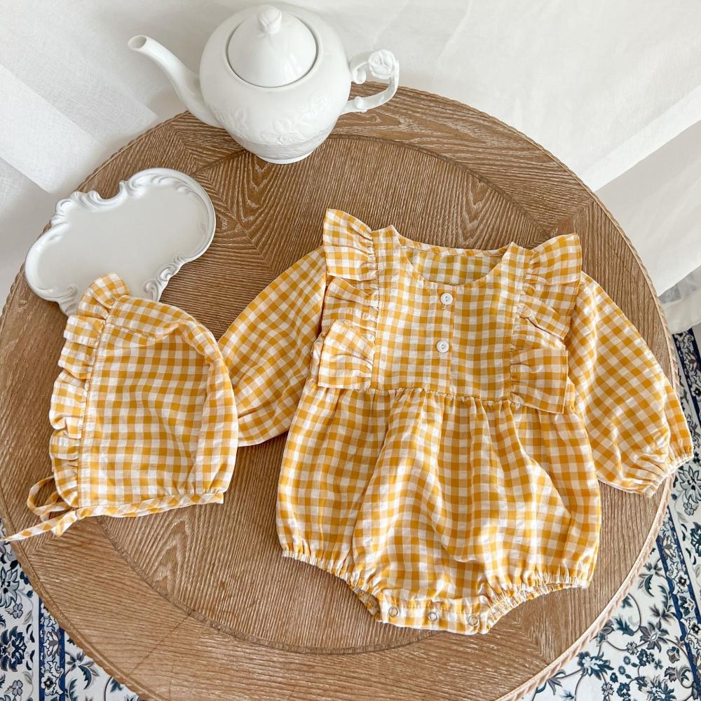 Autumn Baby Girls Western-style Plaid Romper + Hat Wholesale Girls Clothes