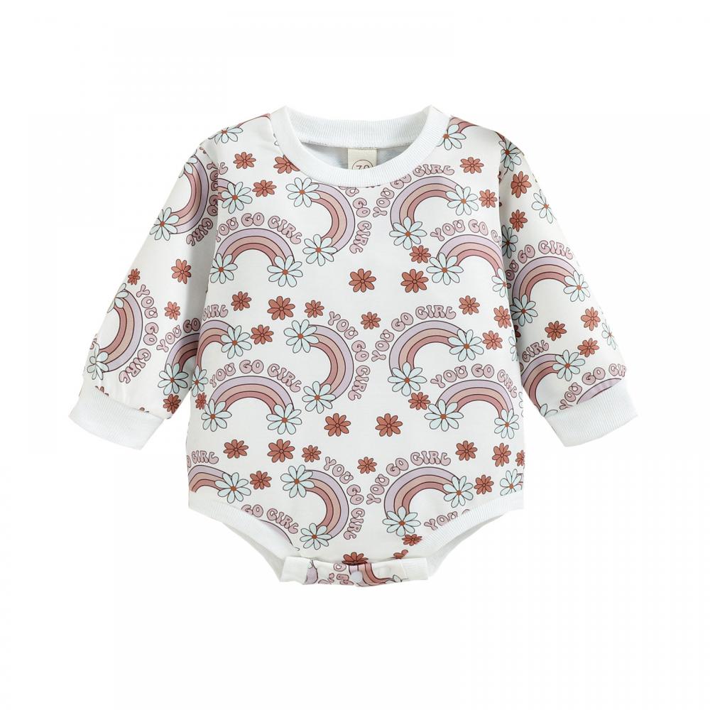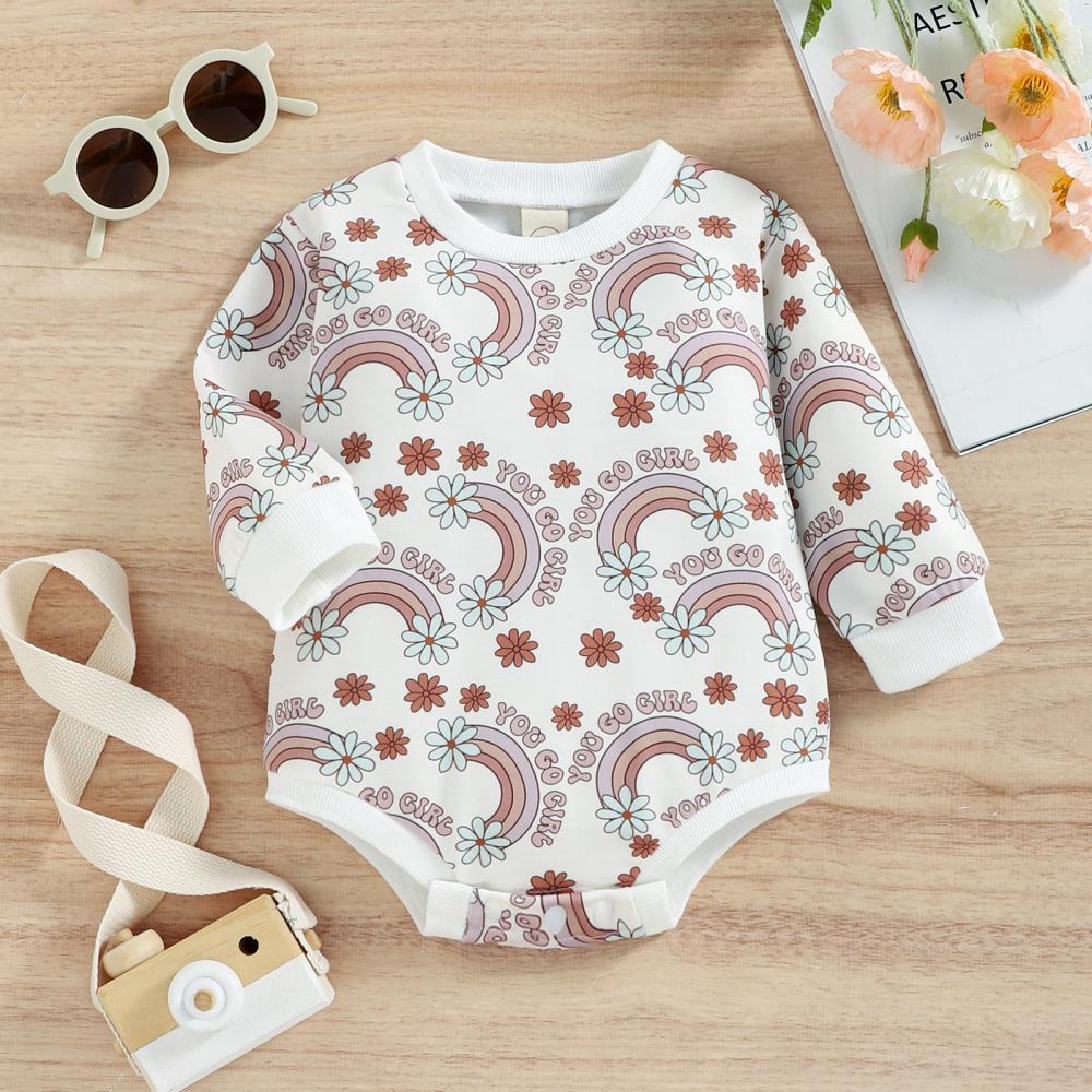 Autumn Baby Rainbow Print Romper Wholesale Girls Clothes