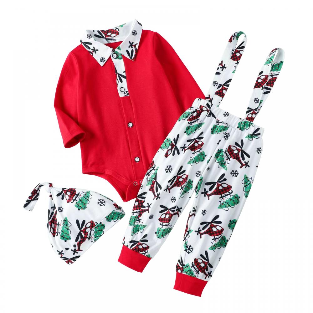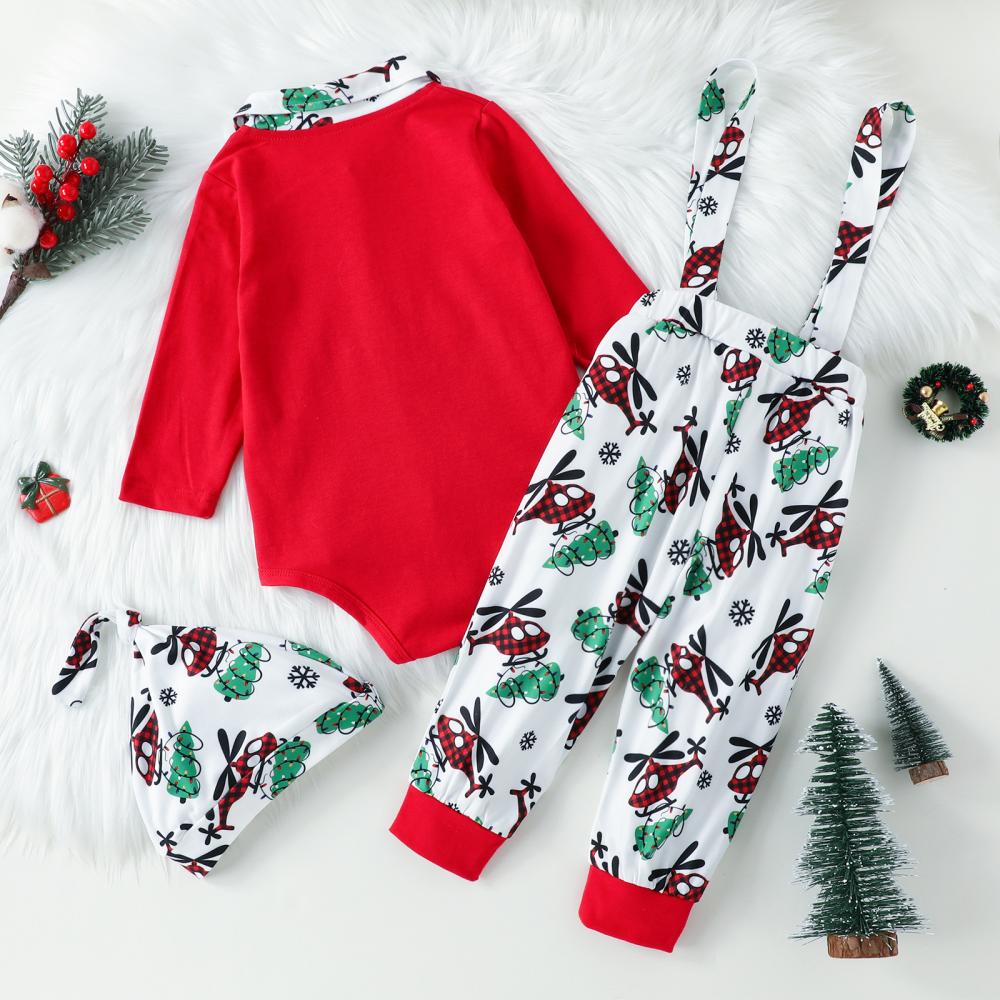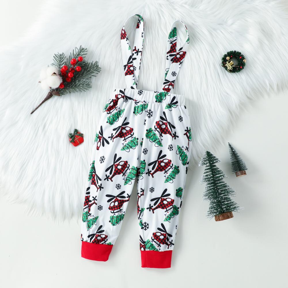 Autumn Boys Christmas Cartoon Airplane Print Bib Suit Wholesale Baby Boy Clothes