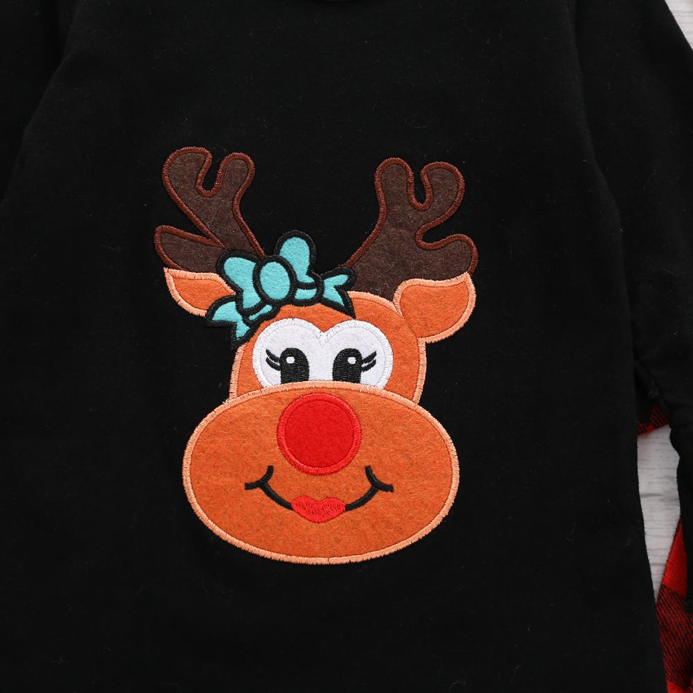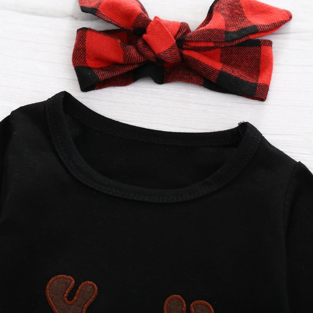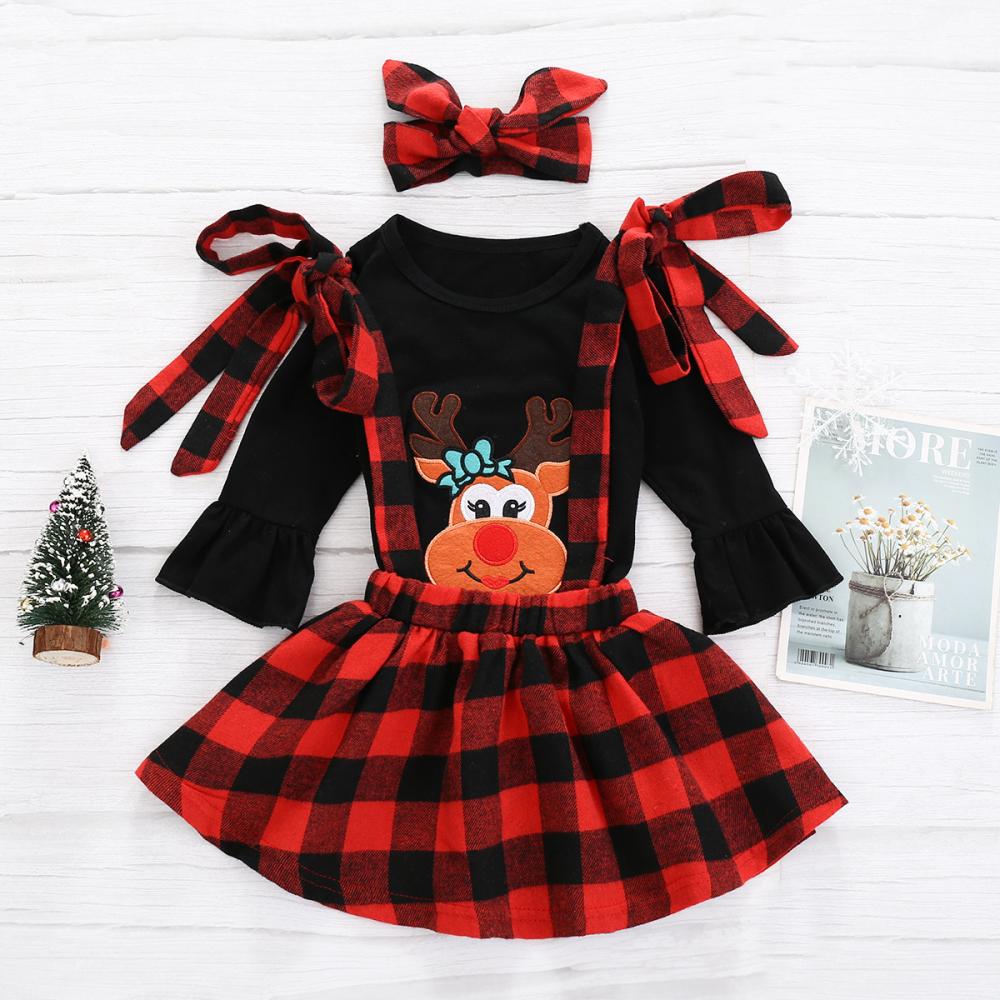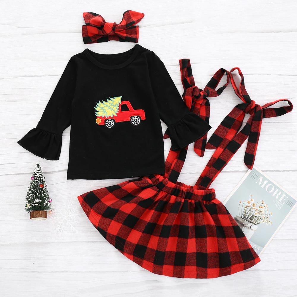 Autumn Christmas Toddler Girl Flared Sleeve Plaid Suspender Skirt Hairband three-piece Suit Wholesale Girl Clothing