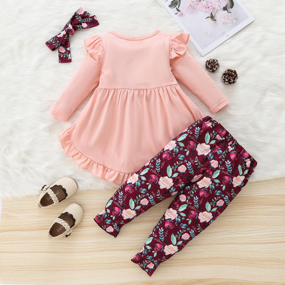 Autumn Girls Bow Ruffle Skirt Print Trousers Three-piece Set Wholesale Girl Clothing
