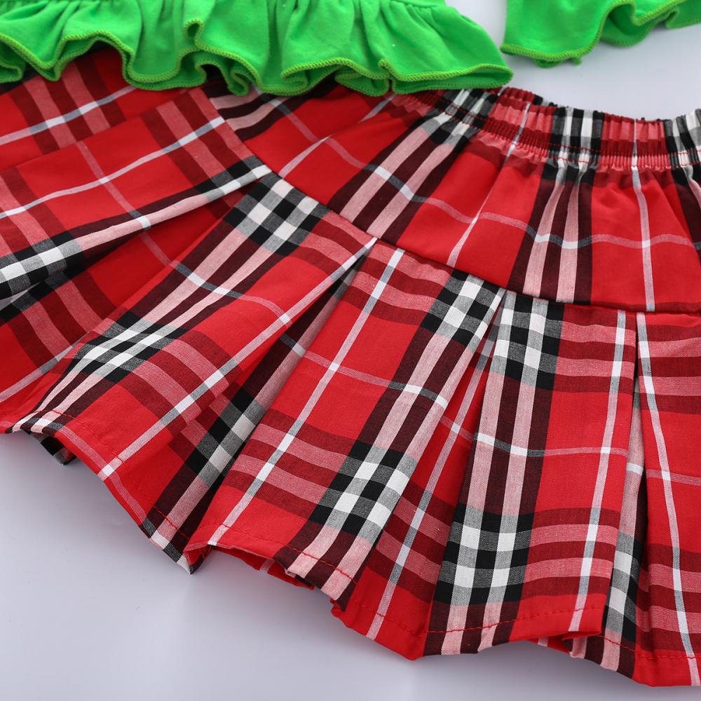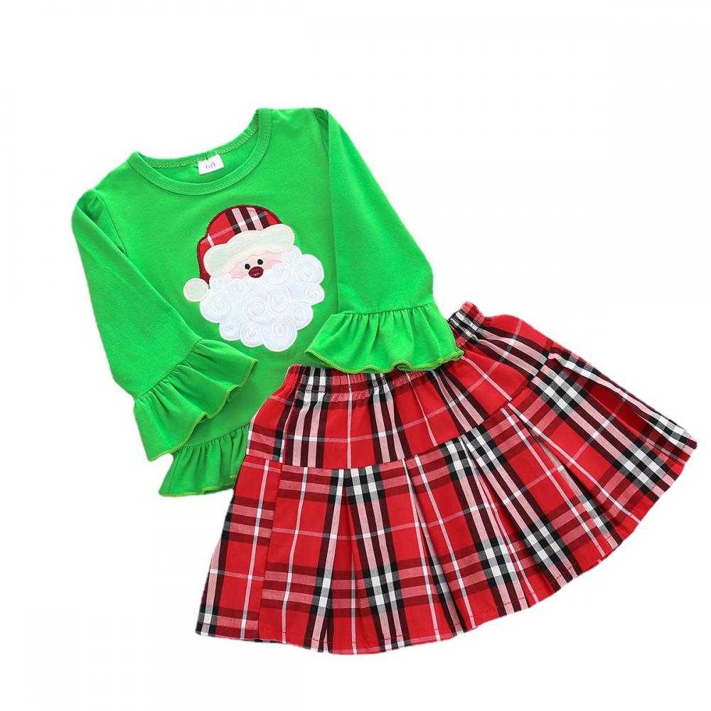 Autumn Girls Christmas Old Man's Head Embroidered Top Plaid Skirt Suit Wholesale Girls Clothes