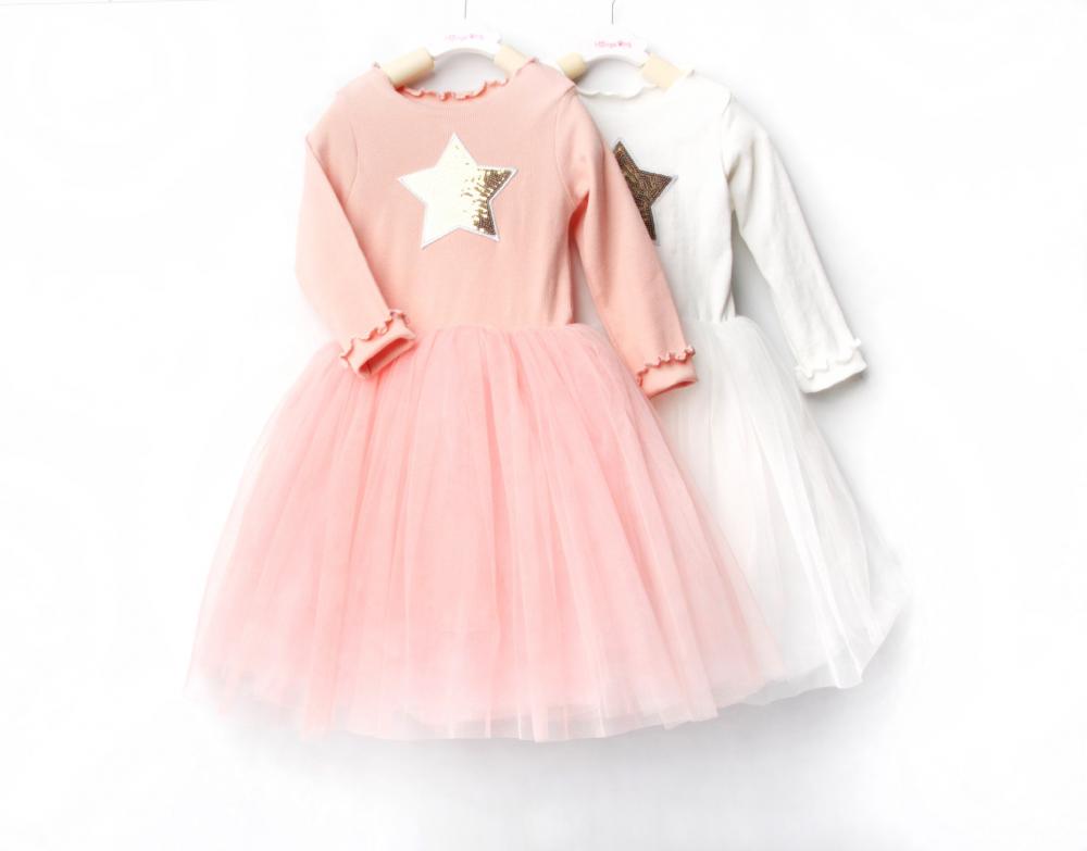 Autumn Girls Long Sleeve Dress Tulle Dress Wholesale Girls Clothing