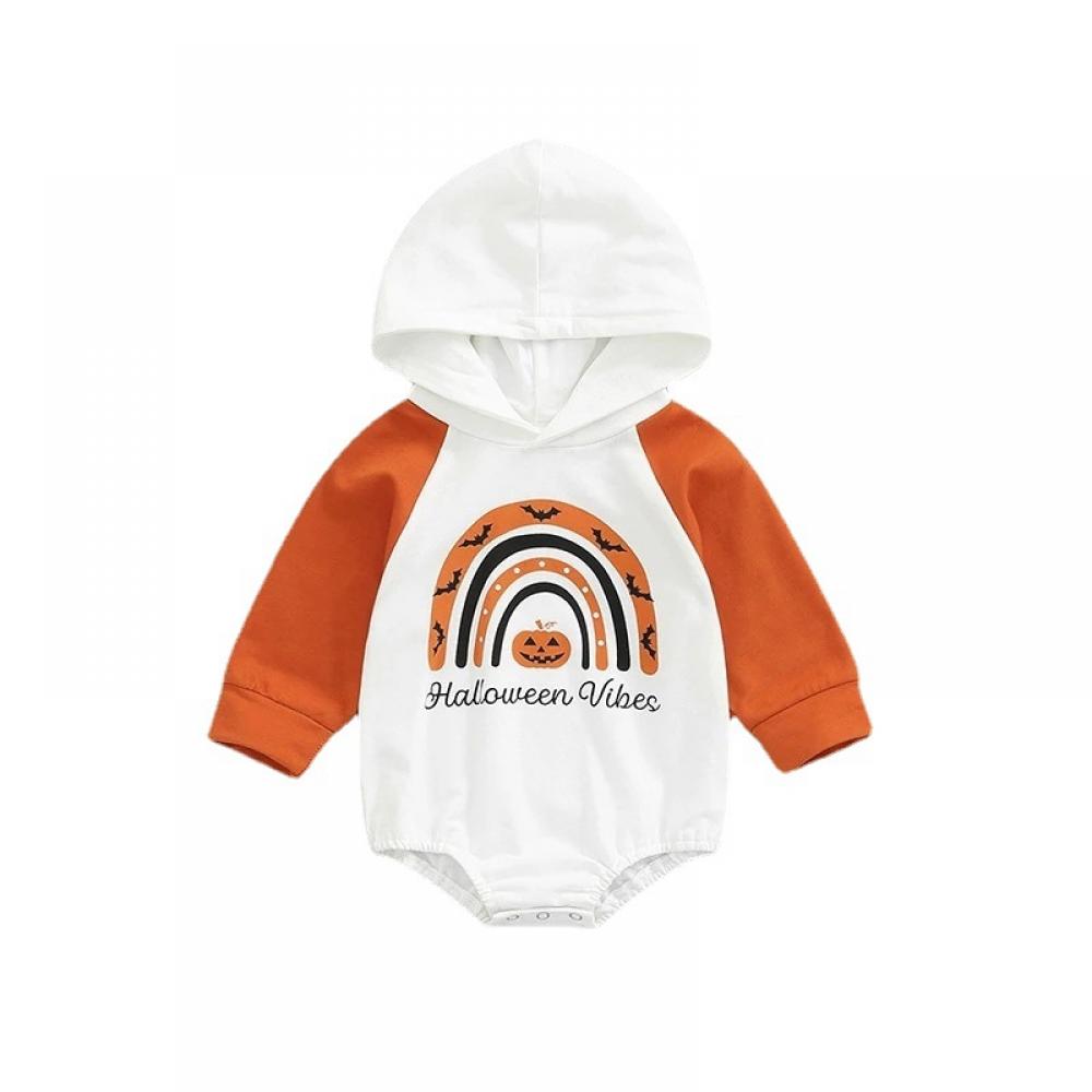 Autumn Kids Romper Infant Rainbow Letter Print Colorblock Hoodie Wholesale Baby Clothes