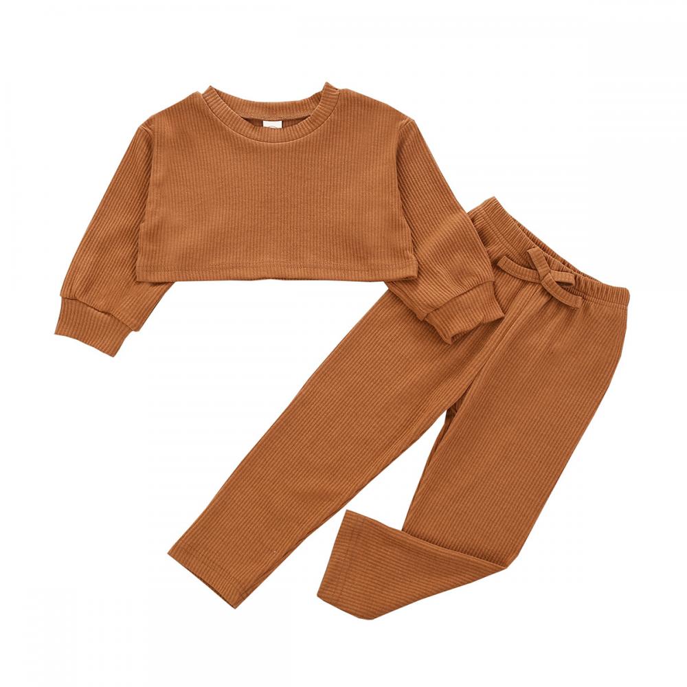 Autumn Little Girls Solid Color Pit Strip Casual Set Wholesale Girls Clothes
