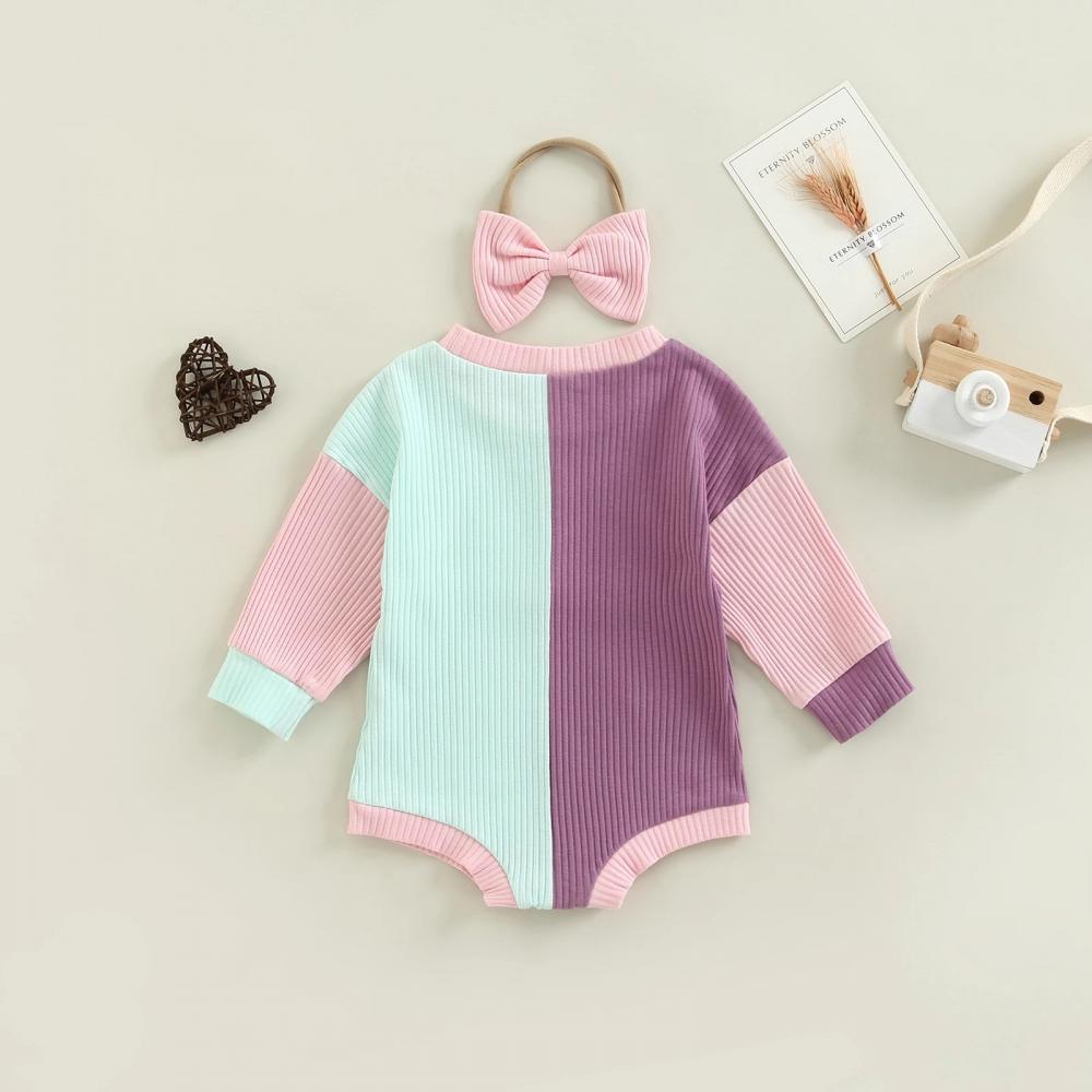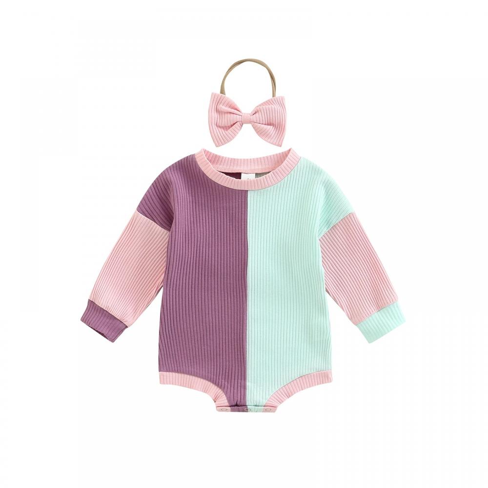 Autumn Pit Strip Color Matching Baby Romper Headband Two-piece Set Baby Clothes In Bulk