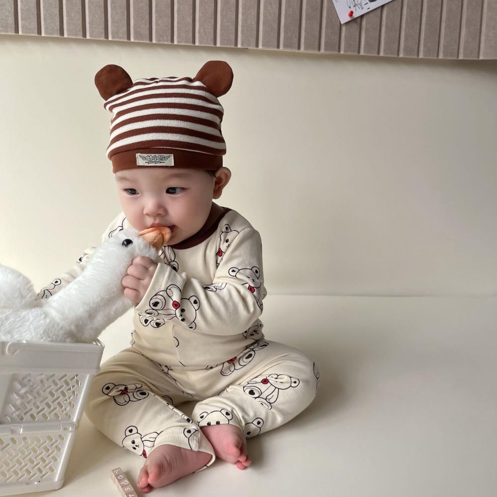 Autumn Printed Long-sleeved Cute Bear Bottoming Shirt Set Baby Clothes Wholesale