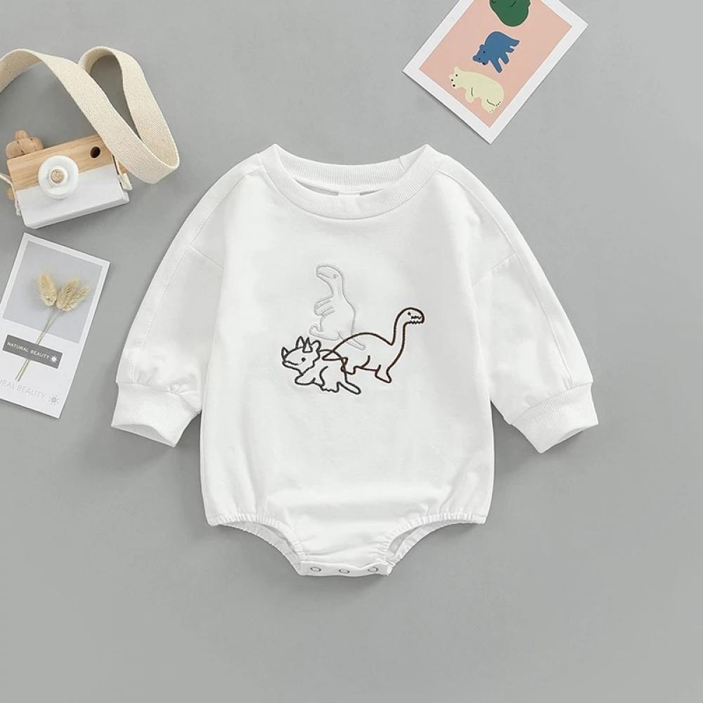 Autumn Solid Color Baby Cartoon Dinosaur Embroidered Romper Wholesale Baby Clothes
