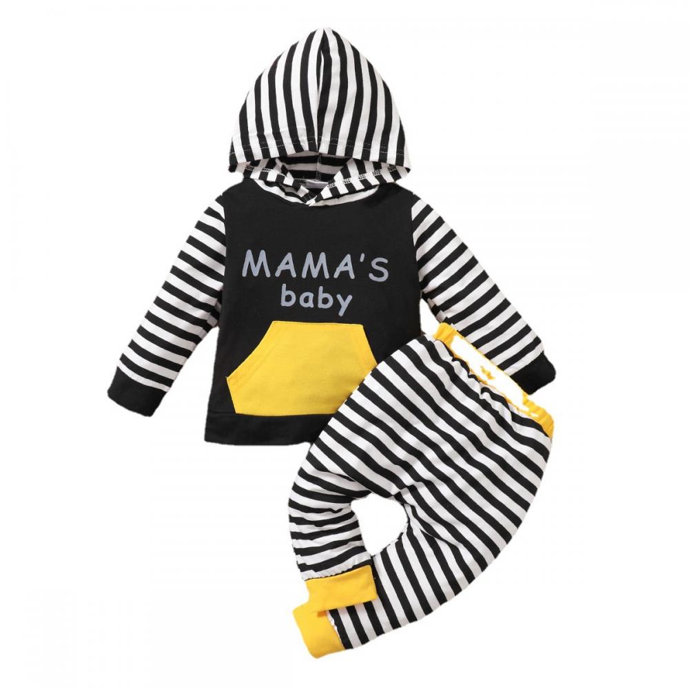 Autumn Spring Baby Stripe Hooded Top + Pants Wholesale Boys Clothes