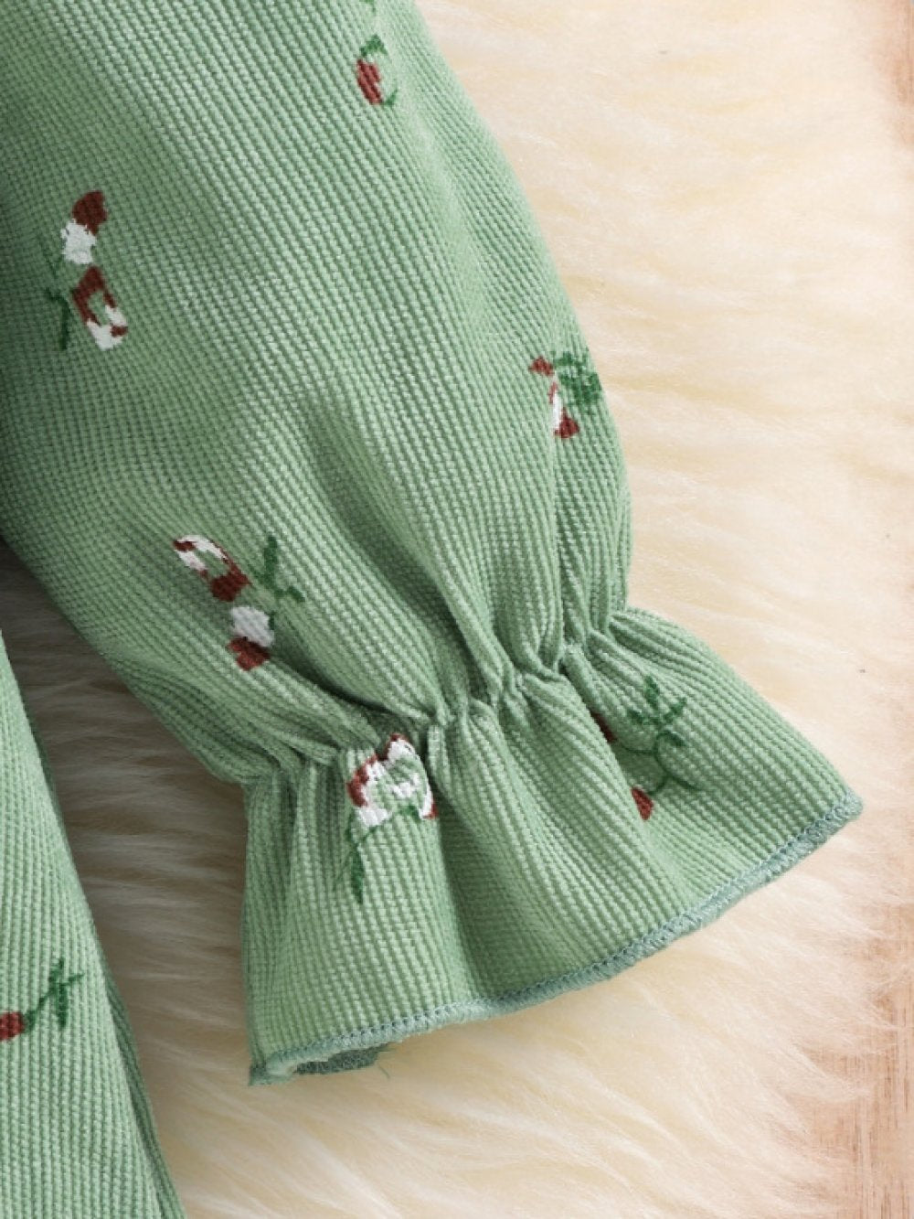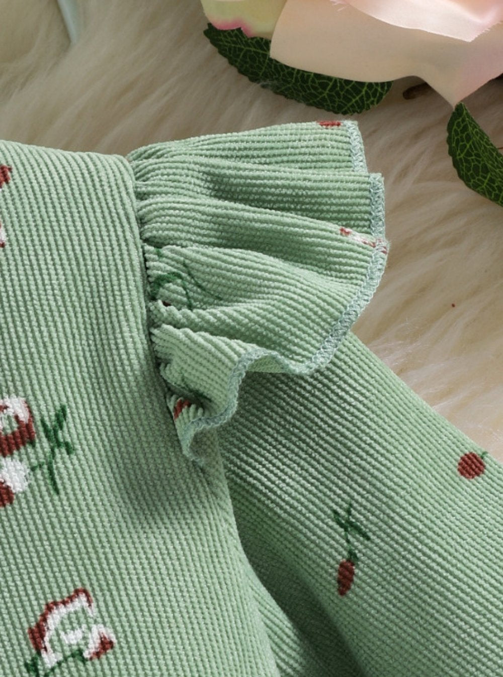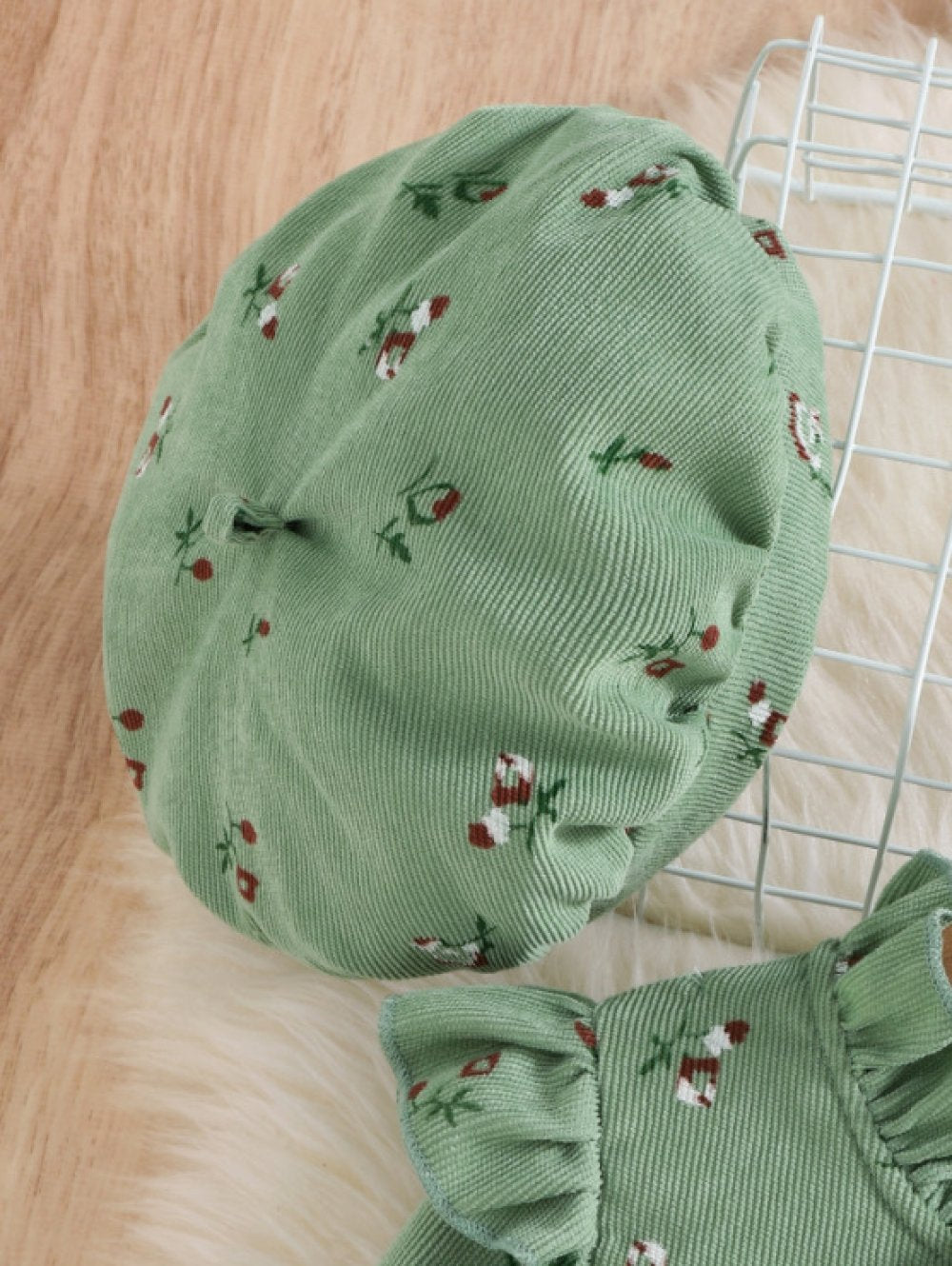 Autumn Toddler Girls Long-sleeve Floral Corduroy Dress + Hat Wholesale Girls Clothes
