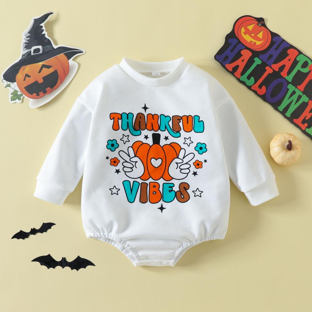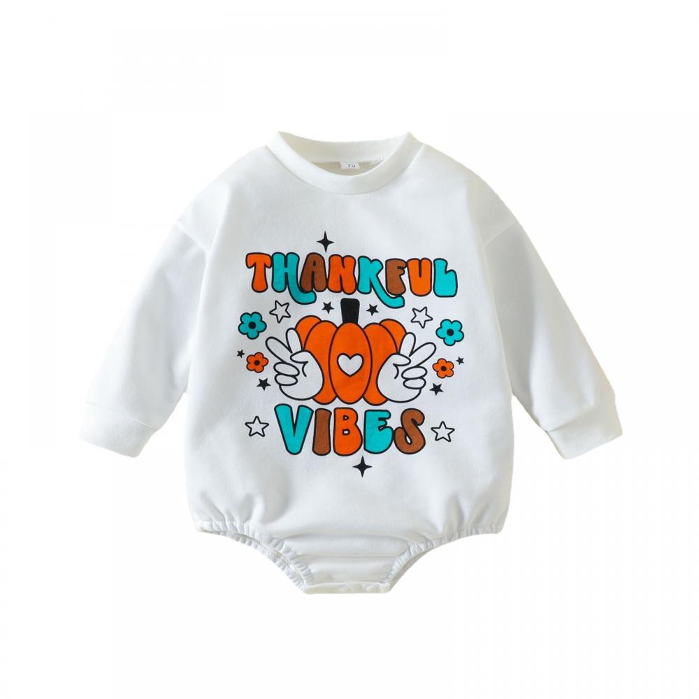 Autumn Toddler Thanksgiving Cartoon Letter Print Romper Wholesale Baby Clothes