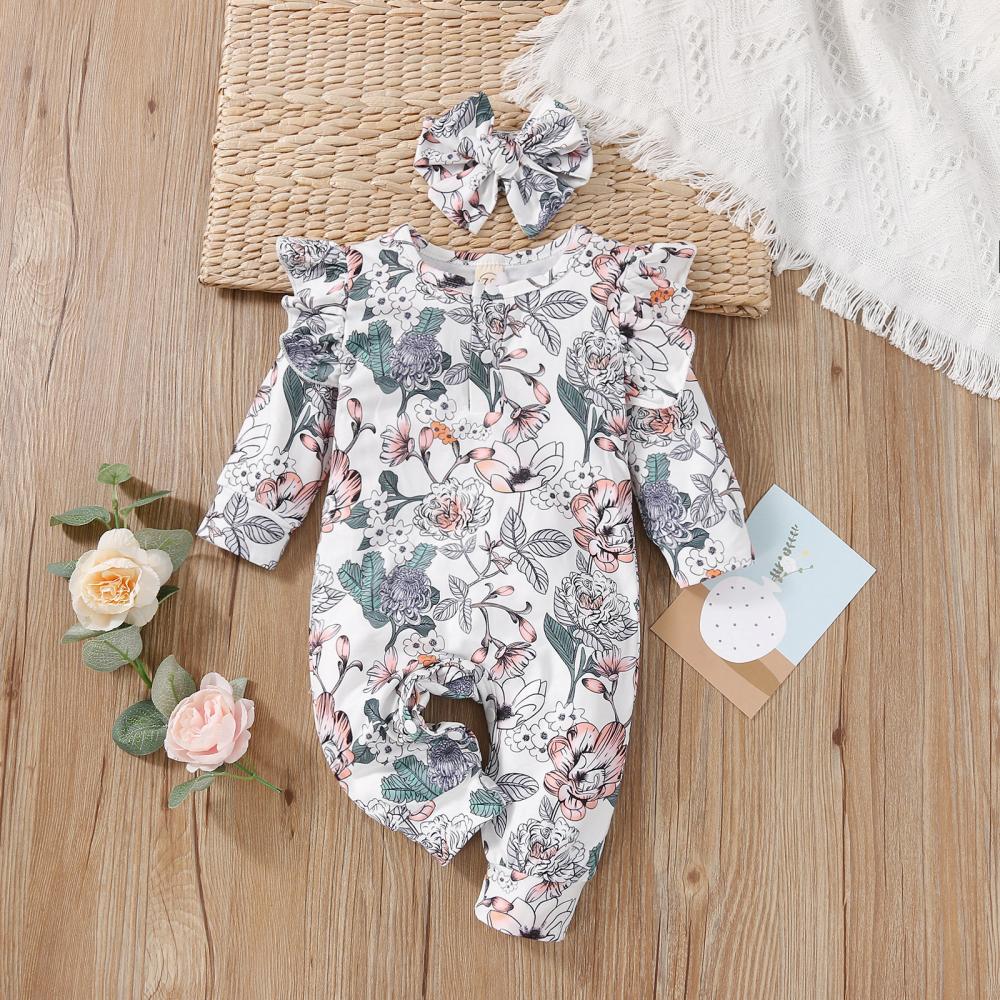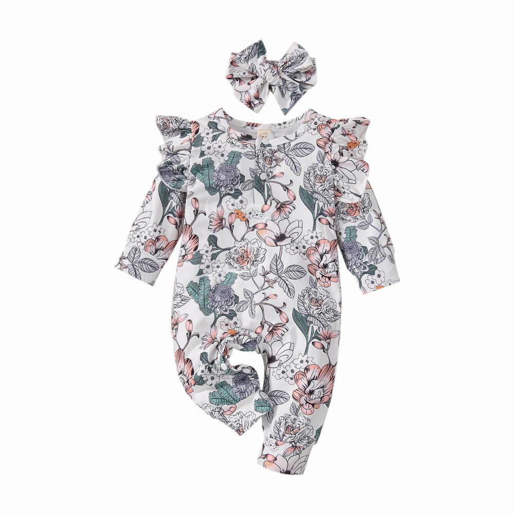 Autumn White Girl Cotton Long-sleeved Romper Flying-sleeve Jumpsuit Baby Girl Clothes In Bulk