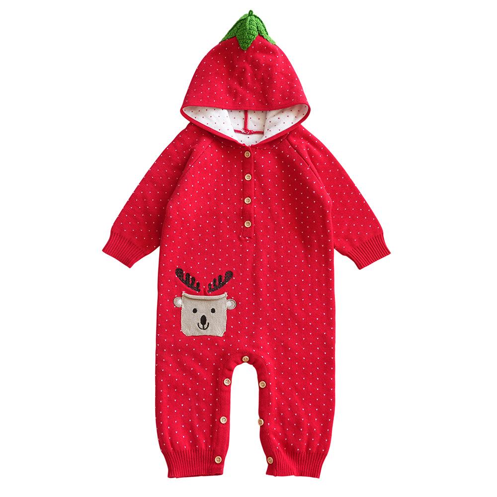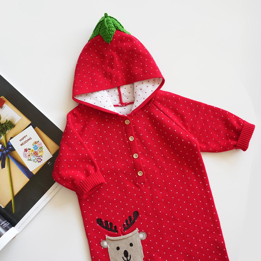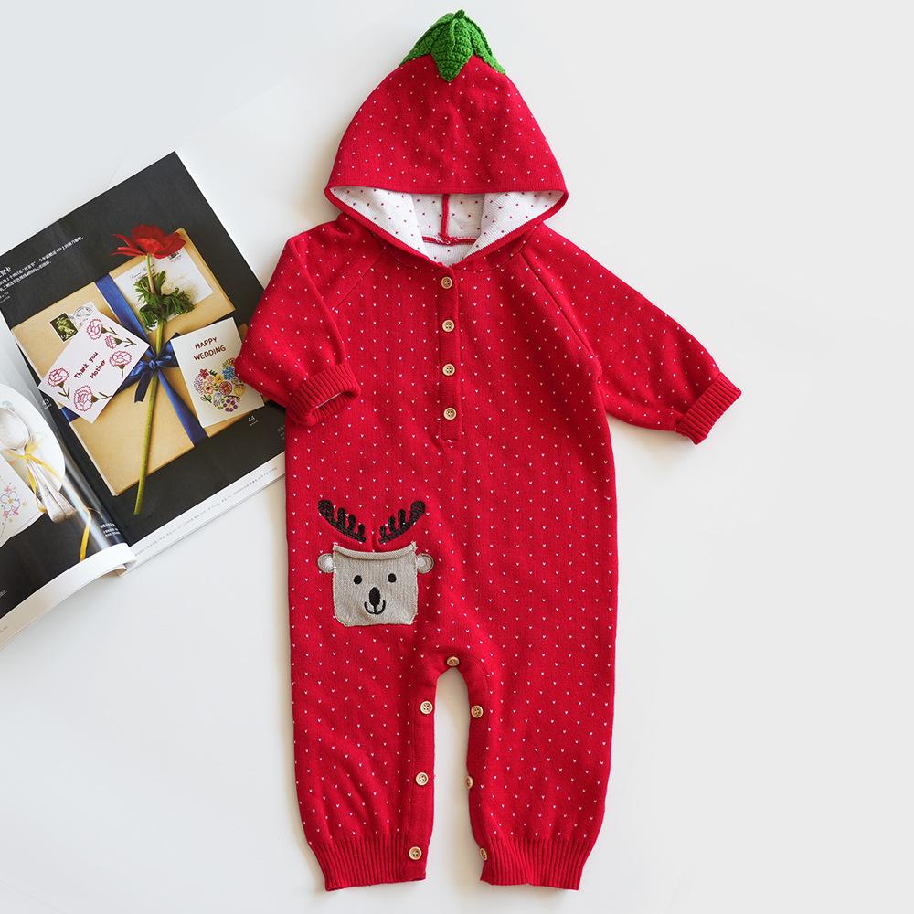 Autumn/Winter Baby Hooded Red Romper Wholesale Baby Clothes