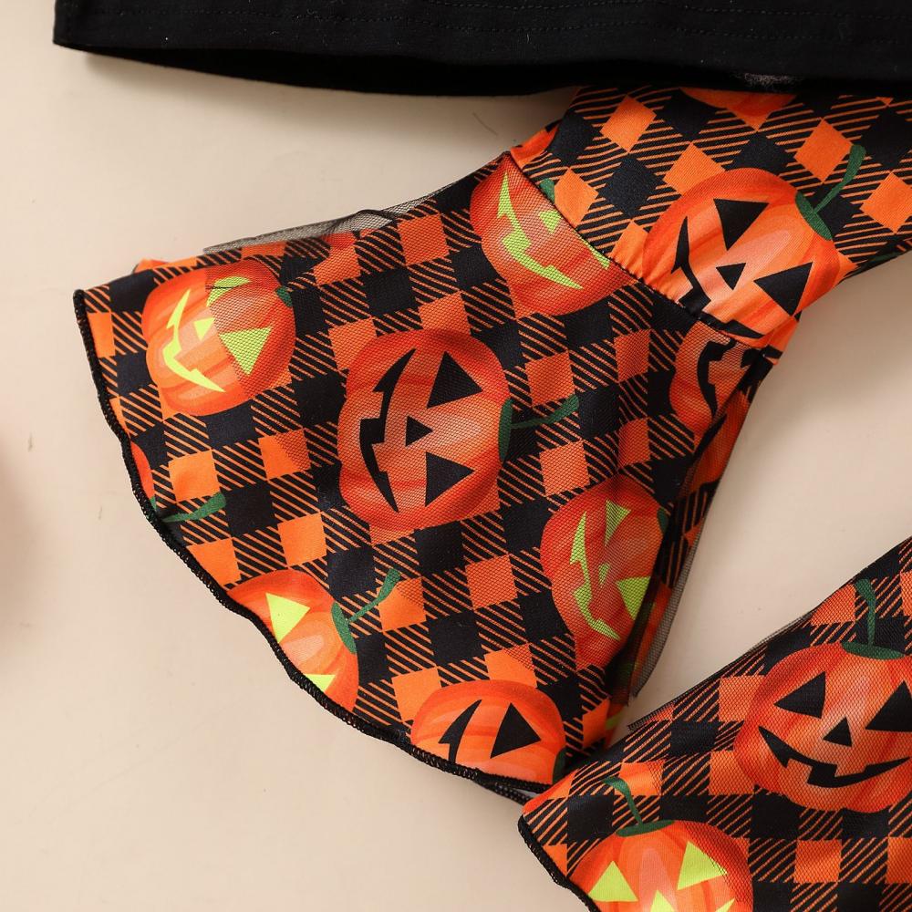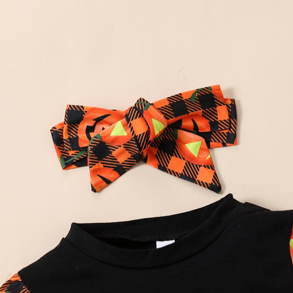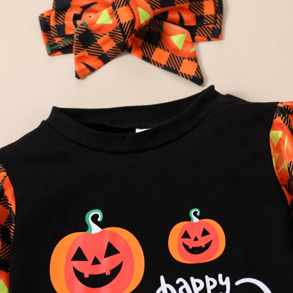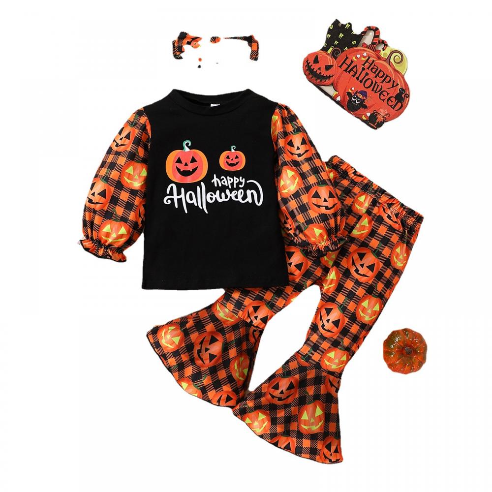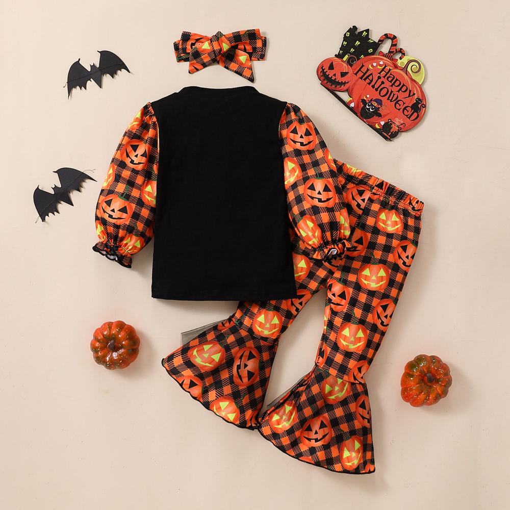 Autumn Winter Halloween Baby Girl Letter Long-sleeved Sweater + Flared Pants Headband 3-piece Set Wholesale