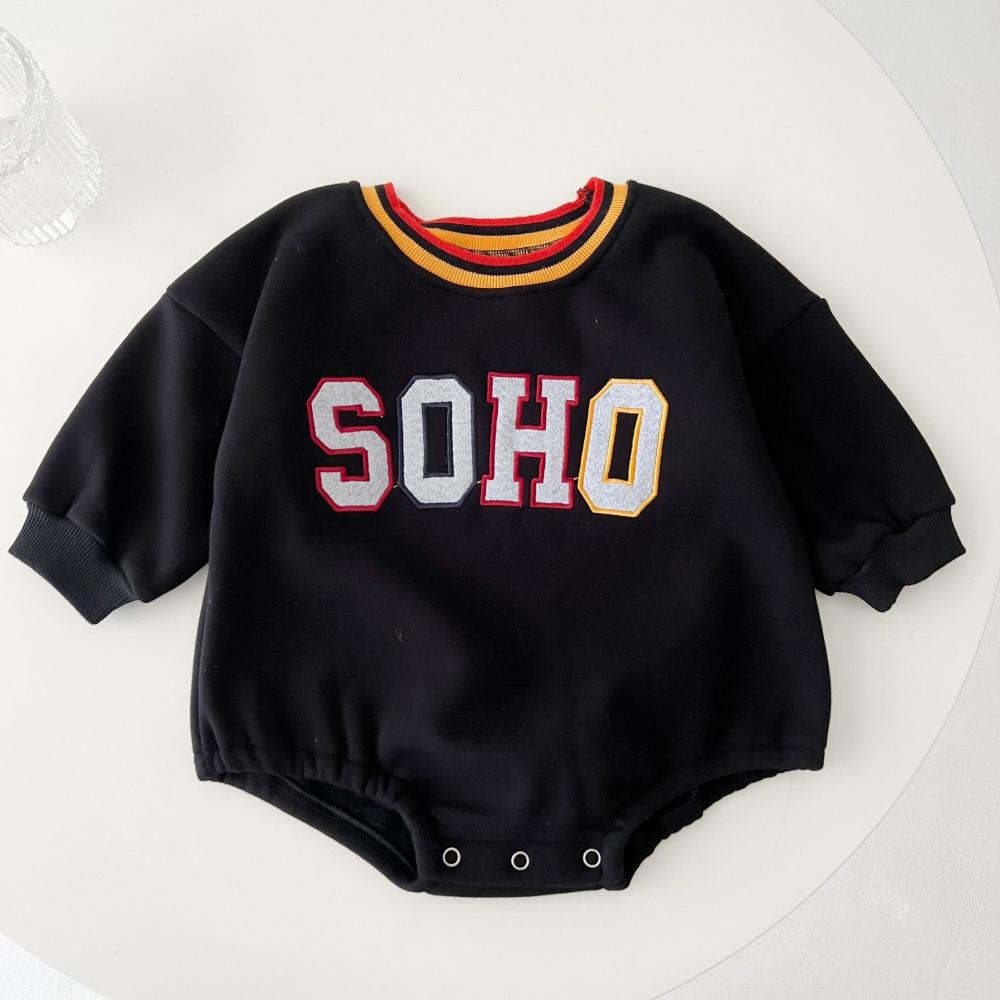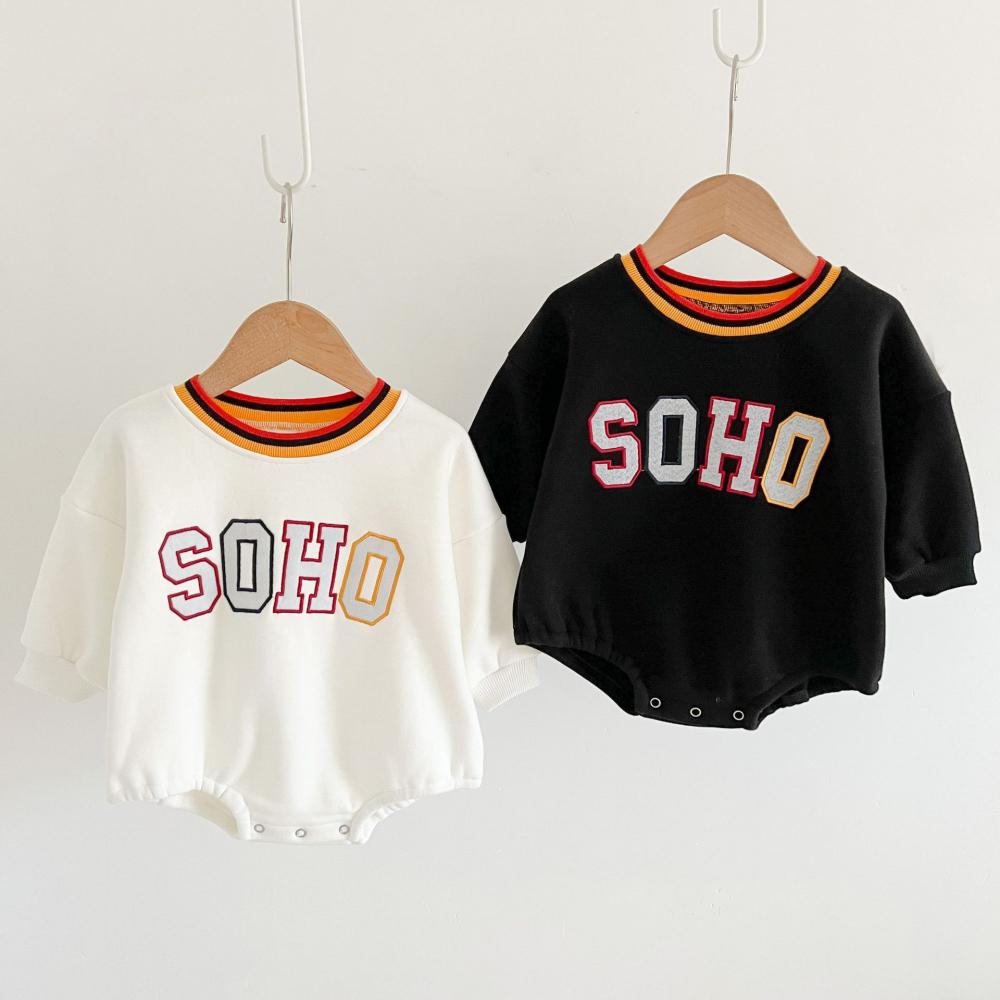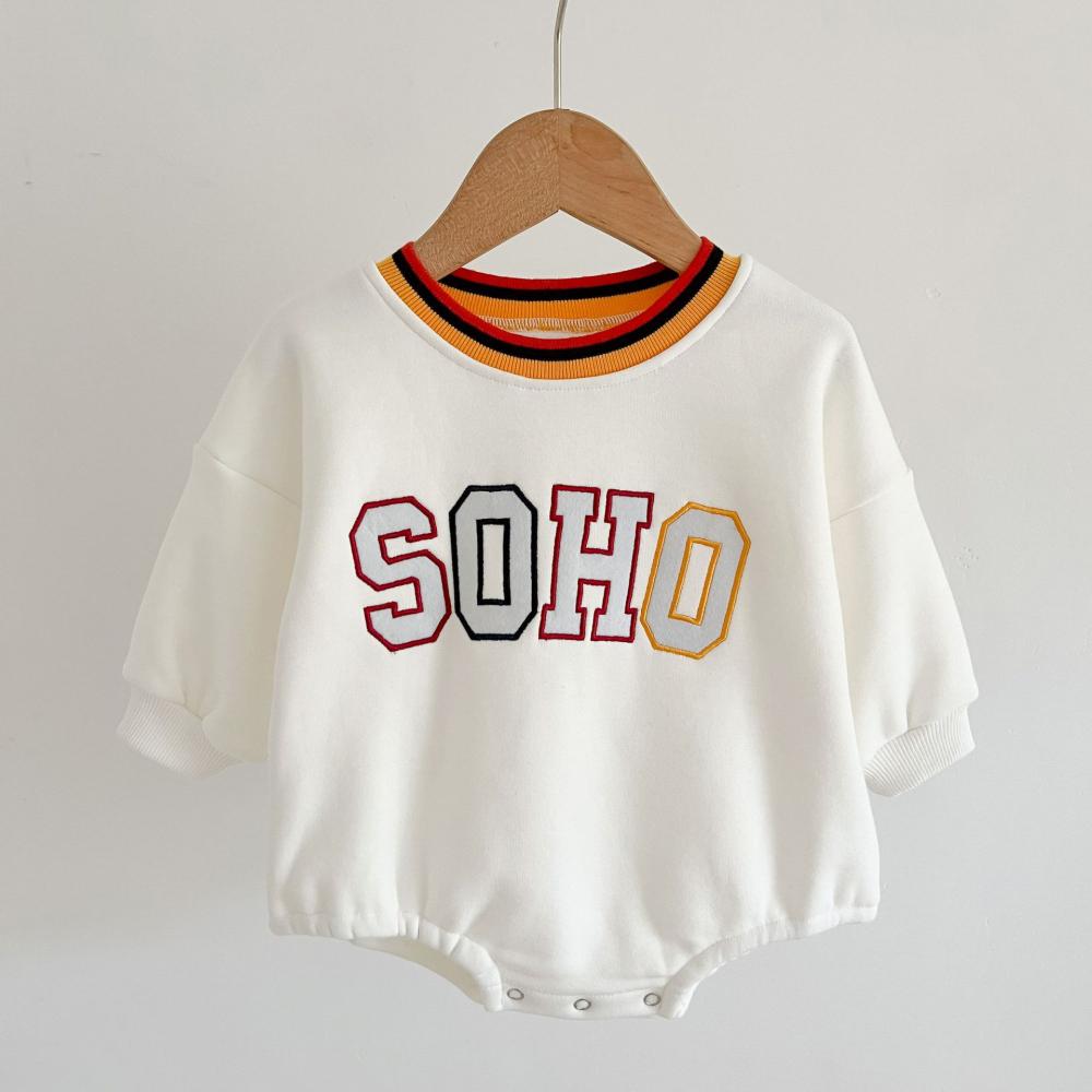 Baby Autumn and Winter Clothes Thickened and Velvet Western-style Letter Romper Wholesale Baby Clothes