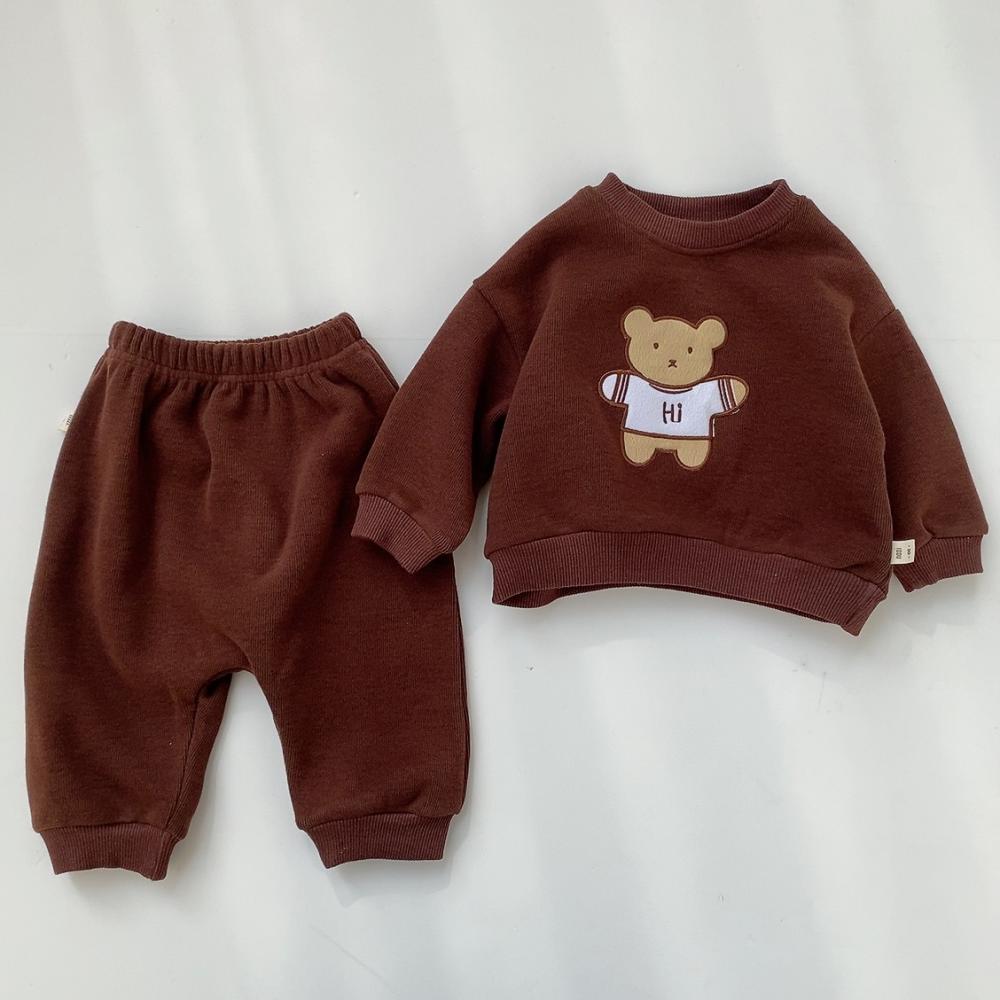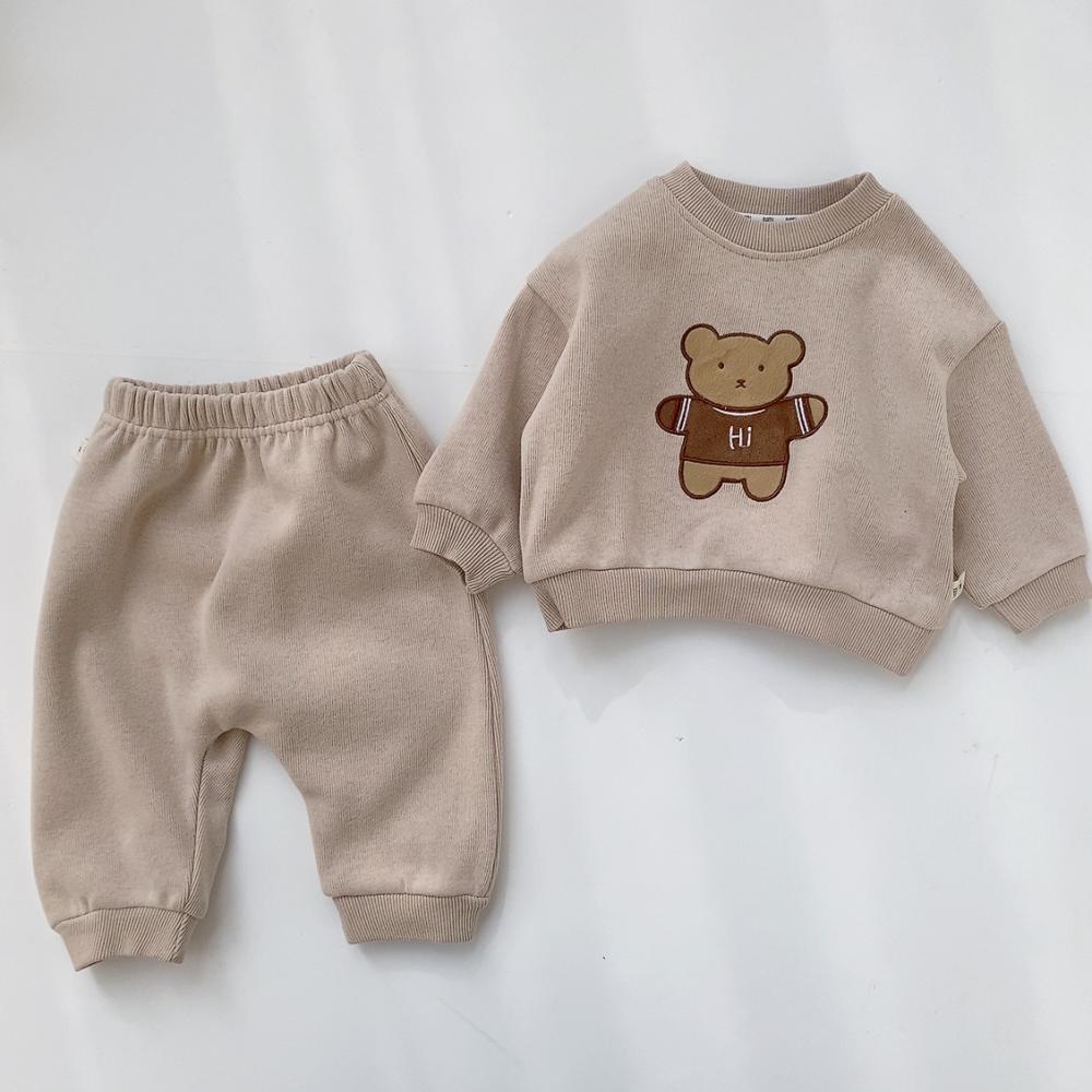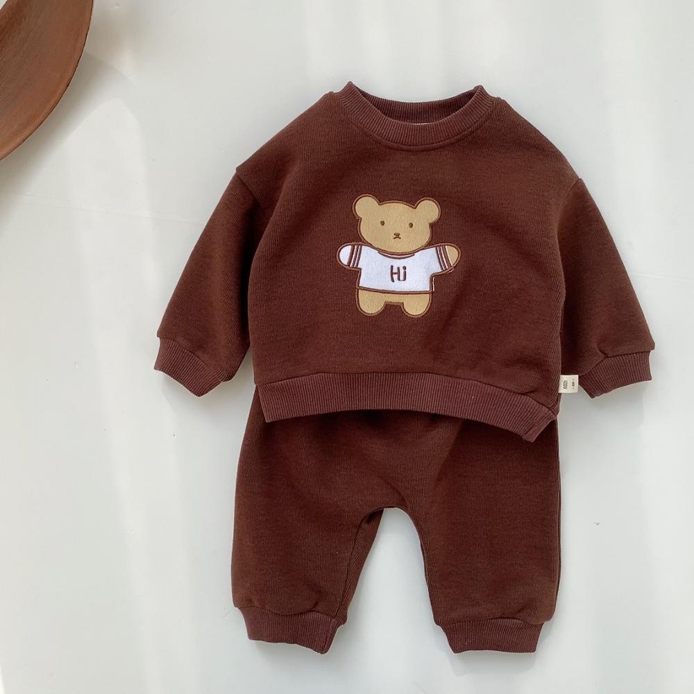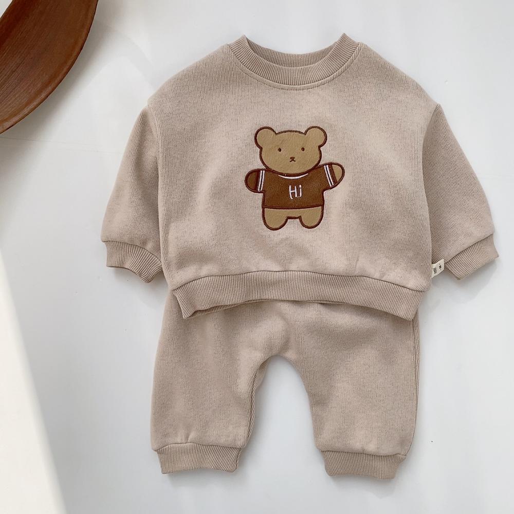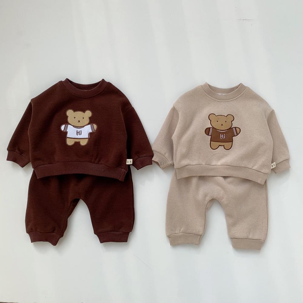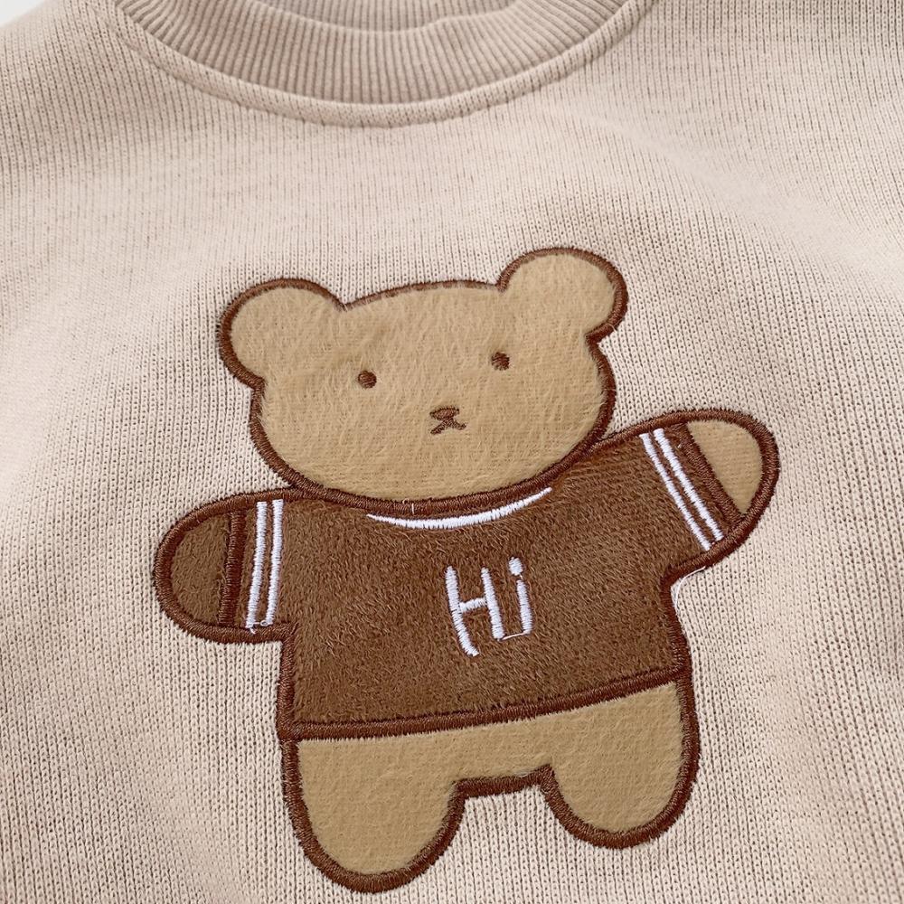 Baby Autumn Bear Embroidery Set Wholesale Boys Clothes