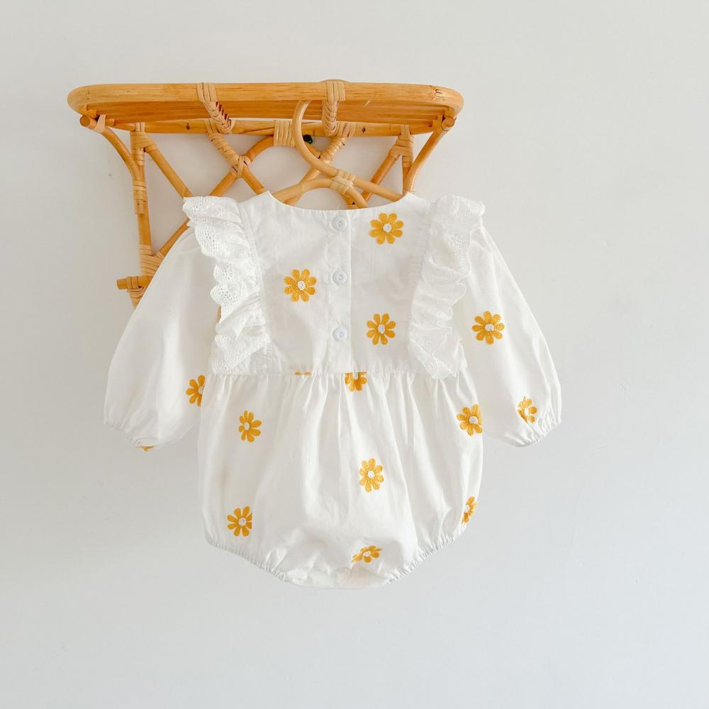 Baby Autumn Daisy Embroidered Romper Wholesale Baby Girls Clothes