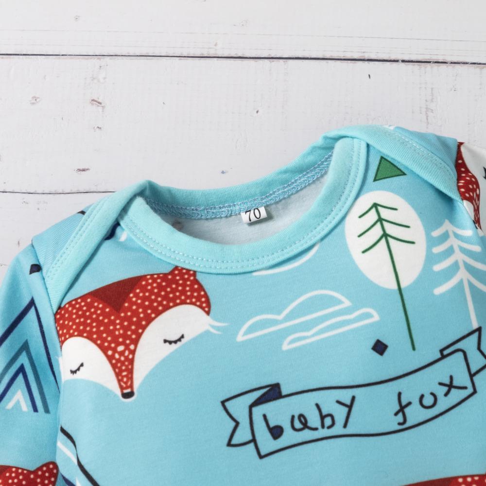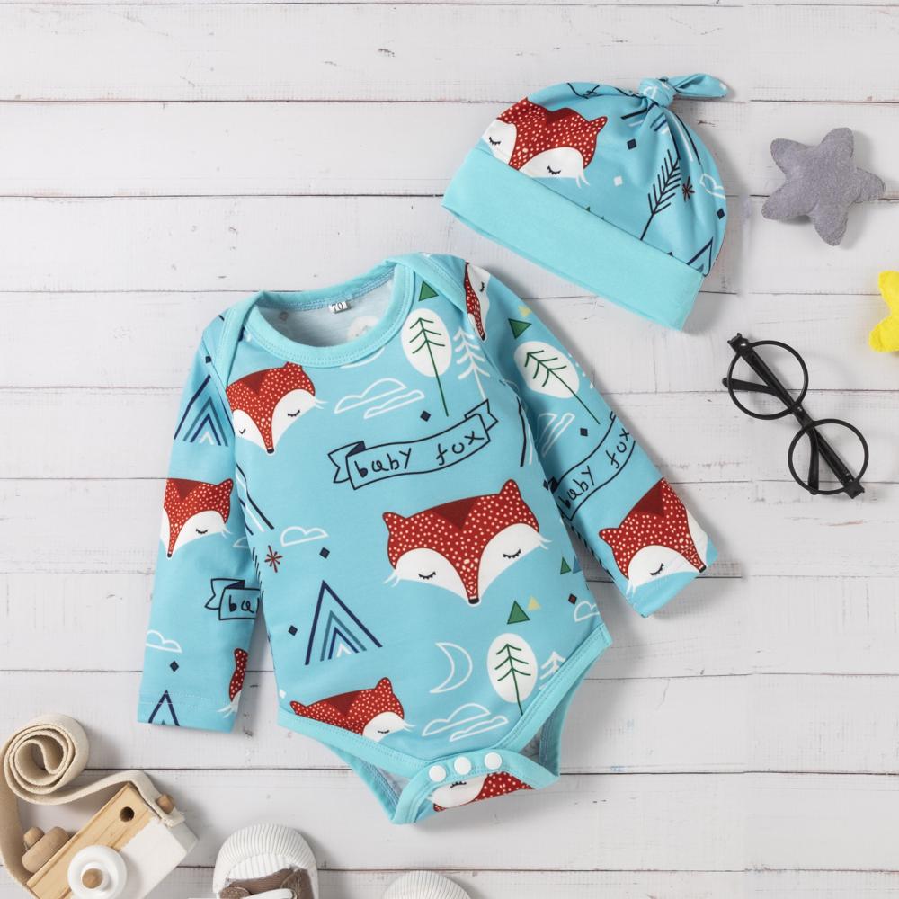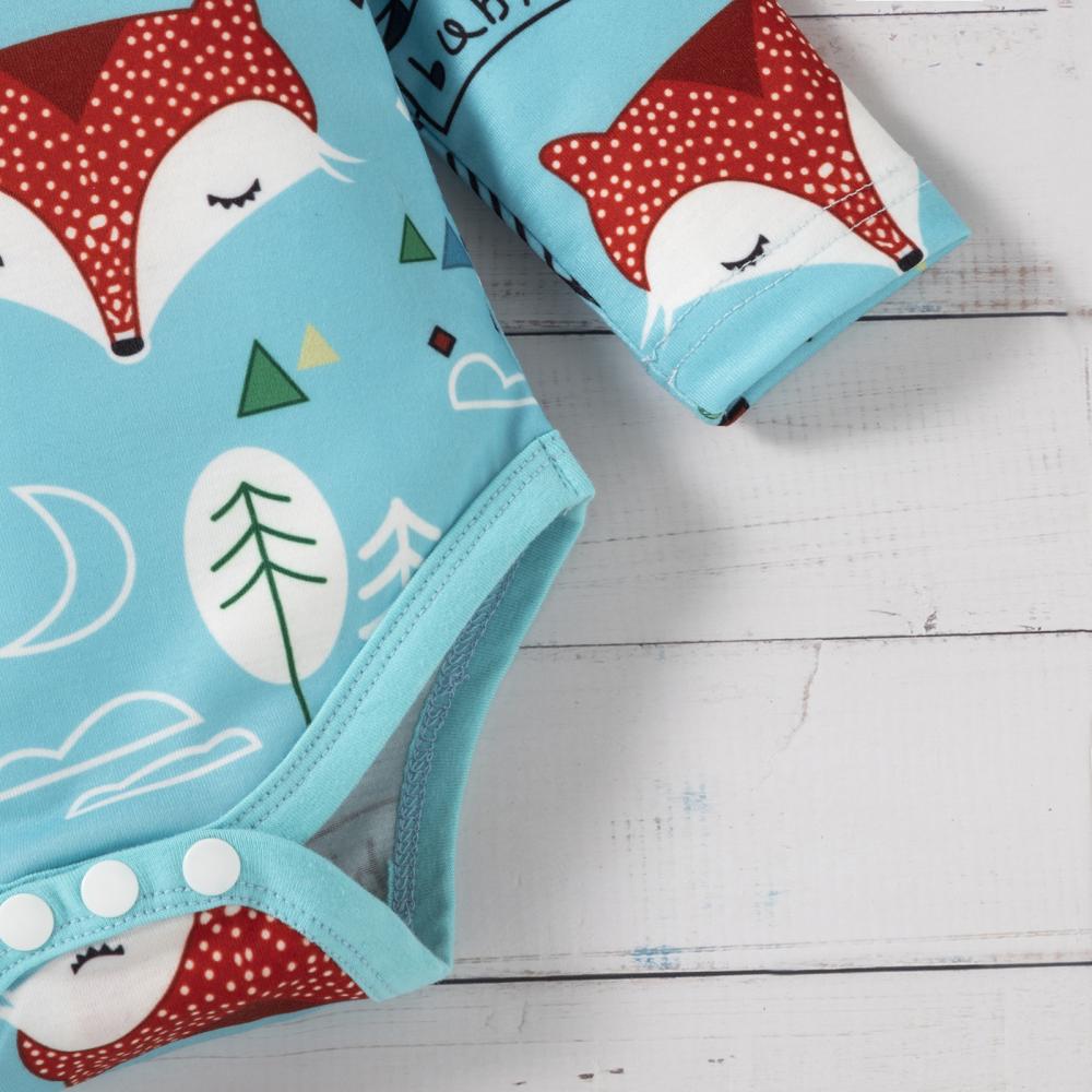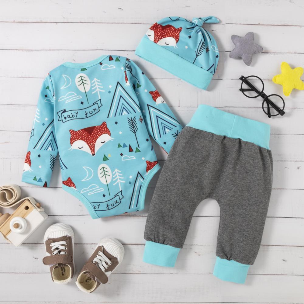 Baby Autumn Fox Print Romper Grey Pants Three Piece Wholesale Boys Clothes