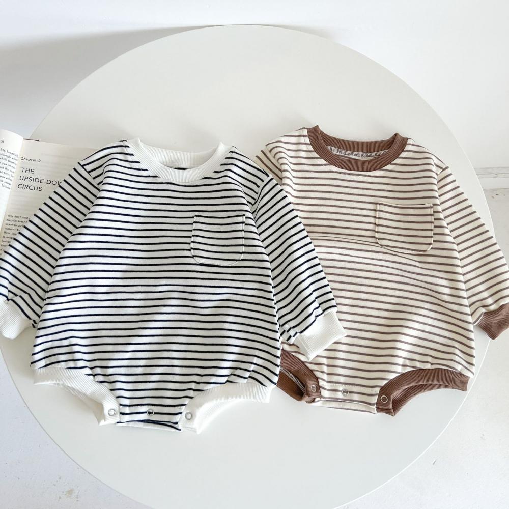 Baby Bodysuit Autumn Striped Pocket Baby Romper Wholesale Baby Clothes