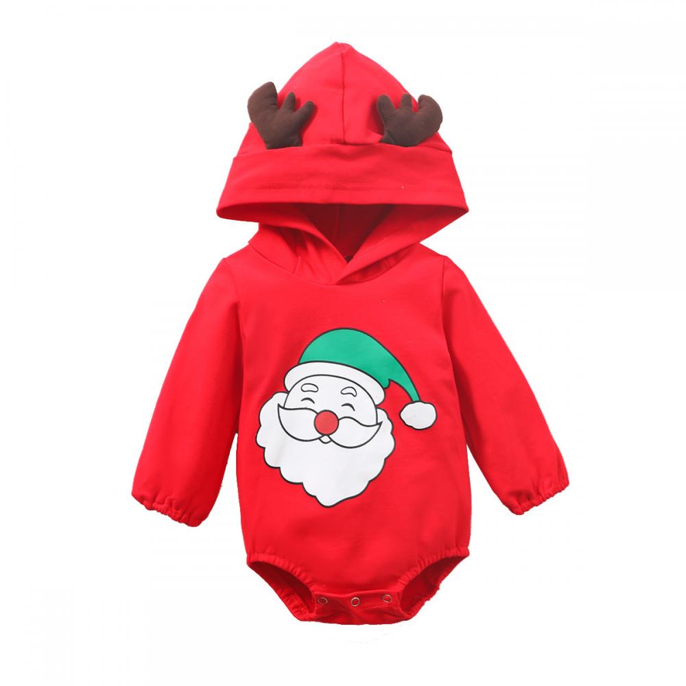 Baby Boys & Girls Santa Printed Christmas Sweatshirt Hoodie Romper Wholesale Baby Clothes