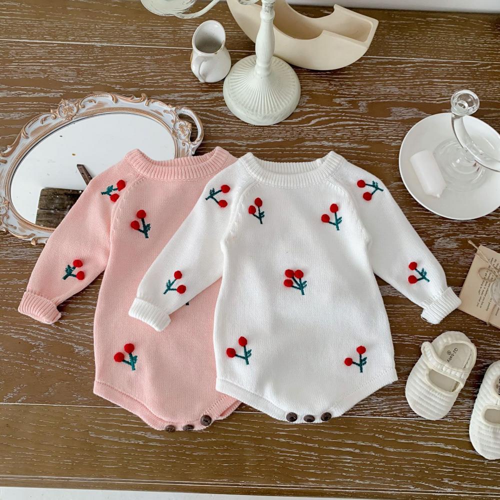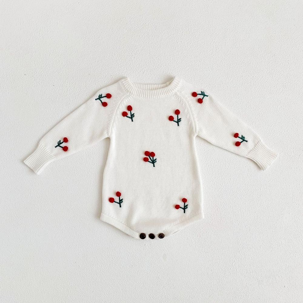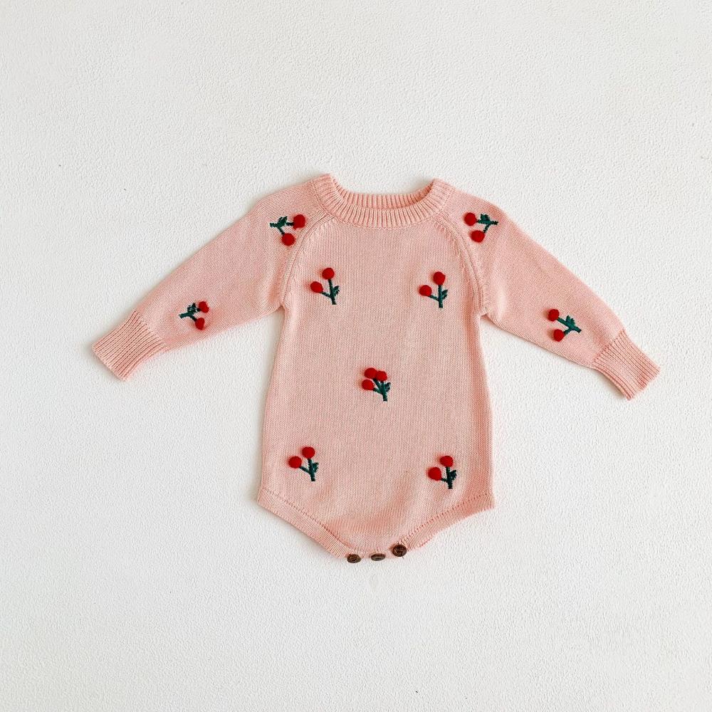 Baby Cherry Long Sleeve Knit Jumpsuit Wholesale Baby Clothes