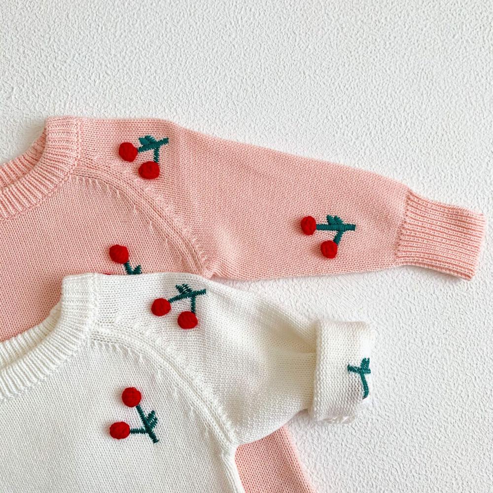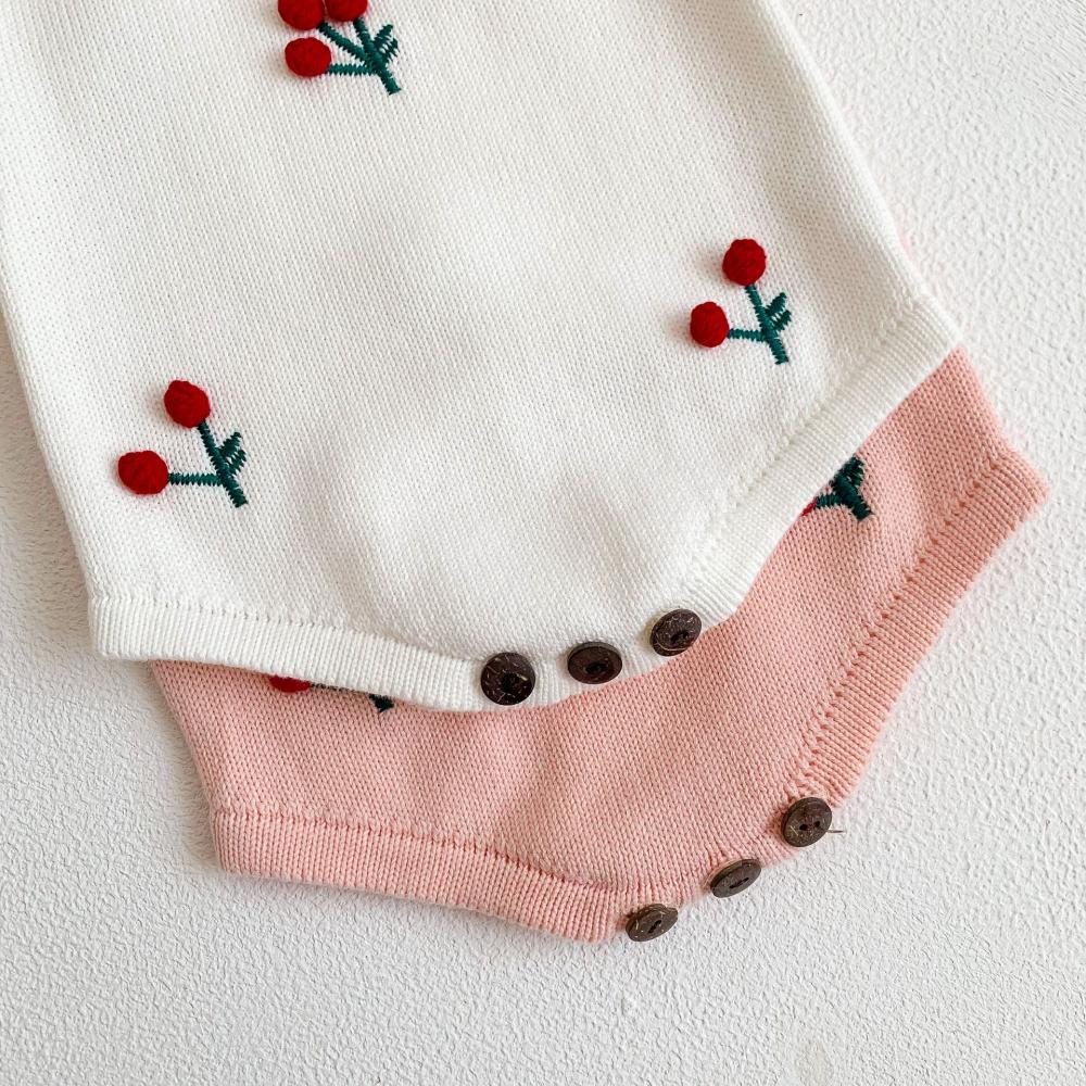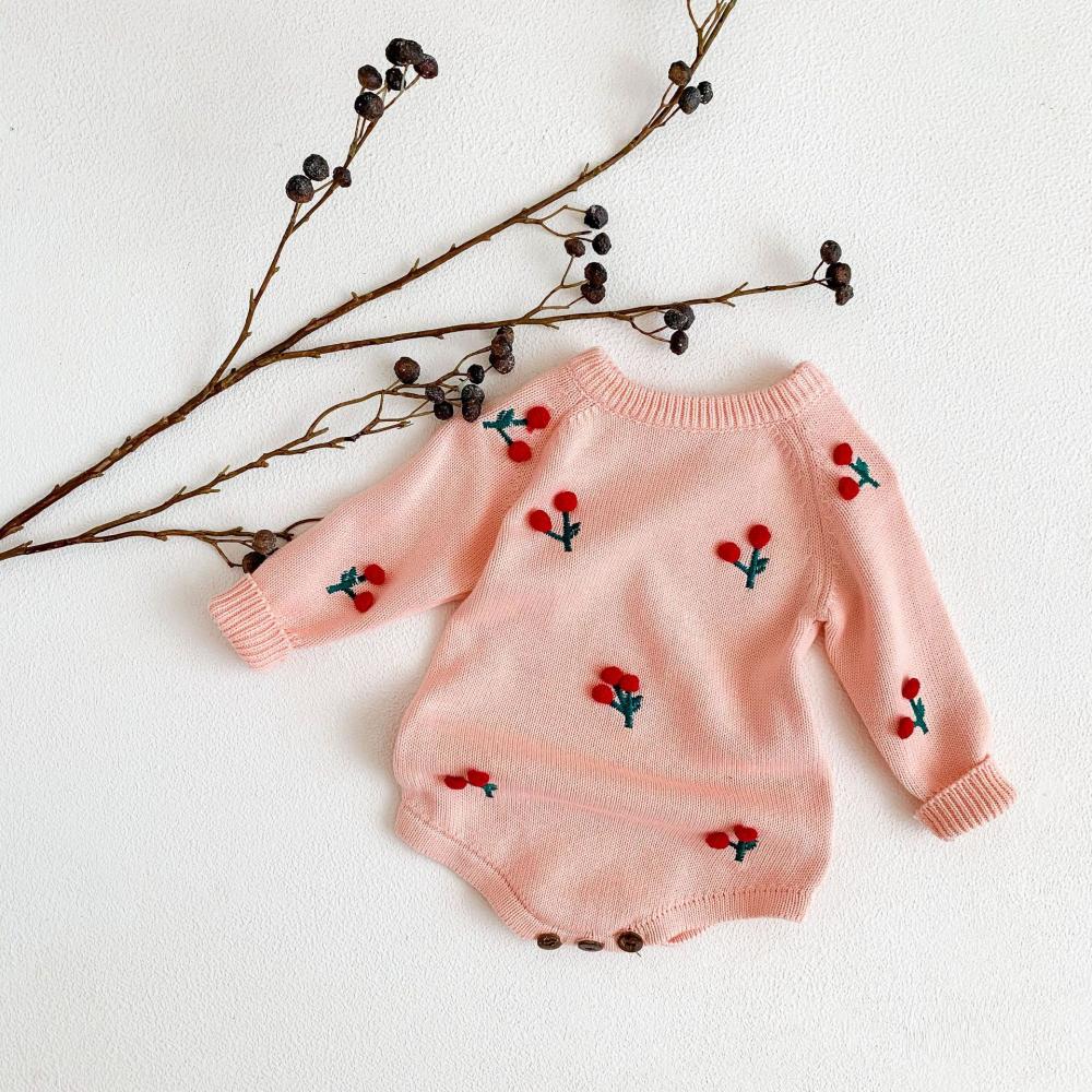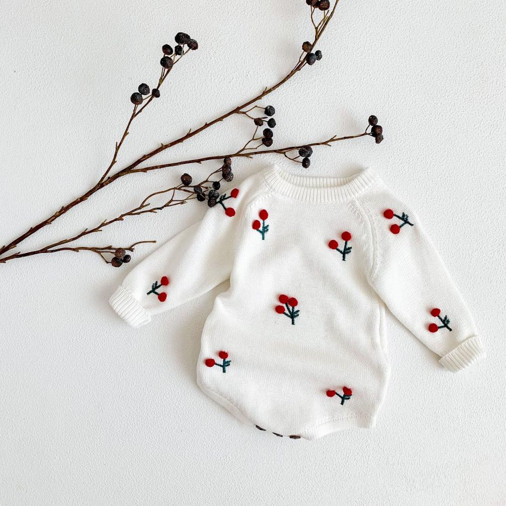 Baby Cherry Long Sleeve Knit Jumpsuit Wholesale Baby Clothes