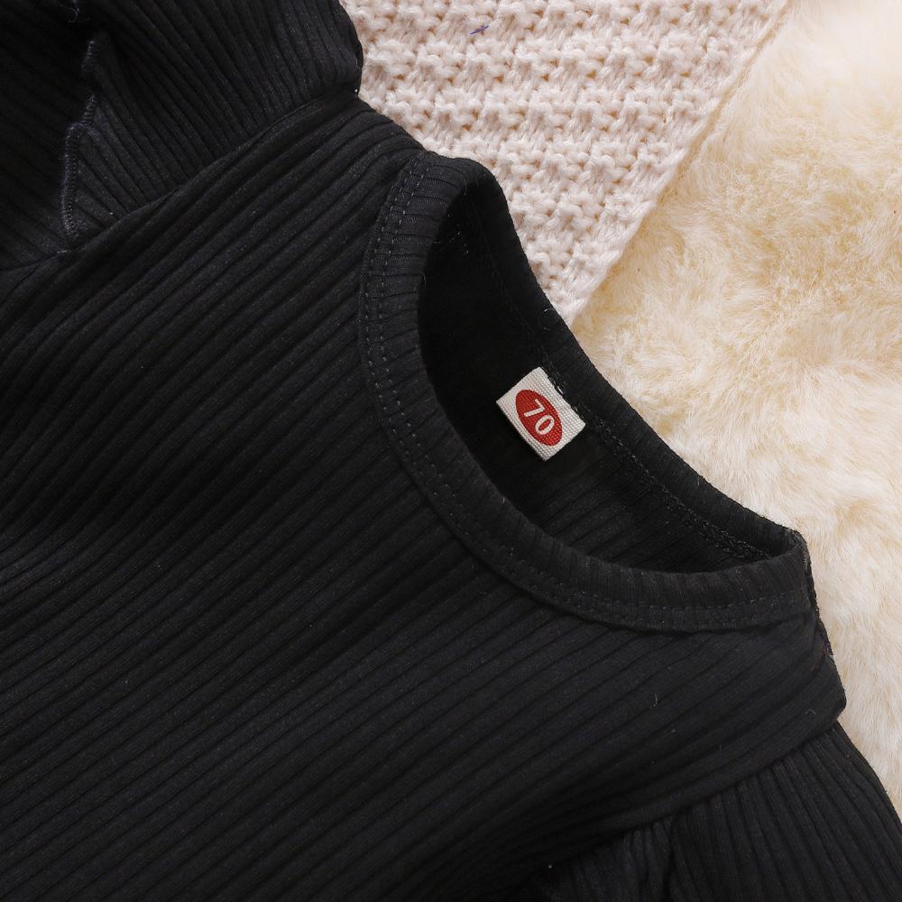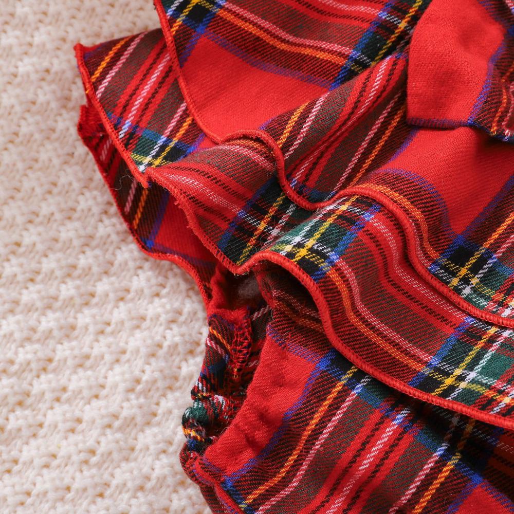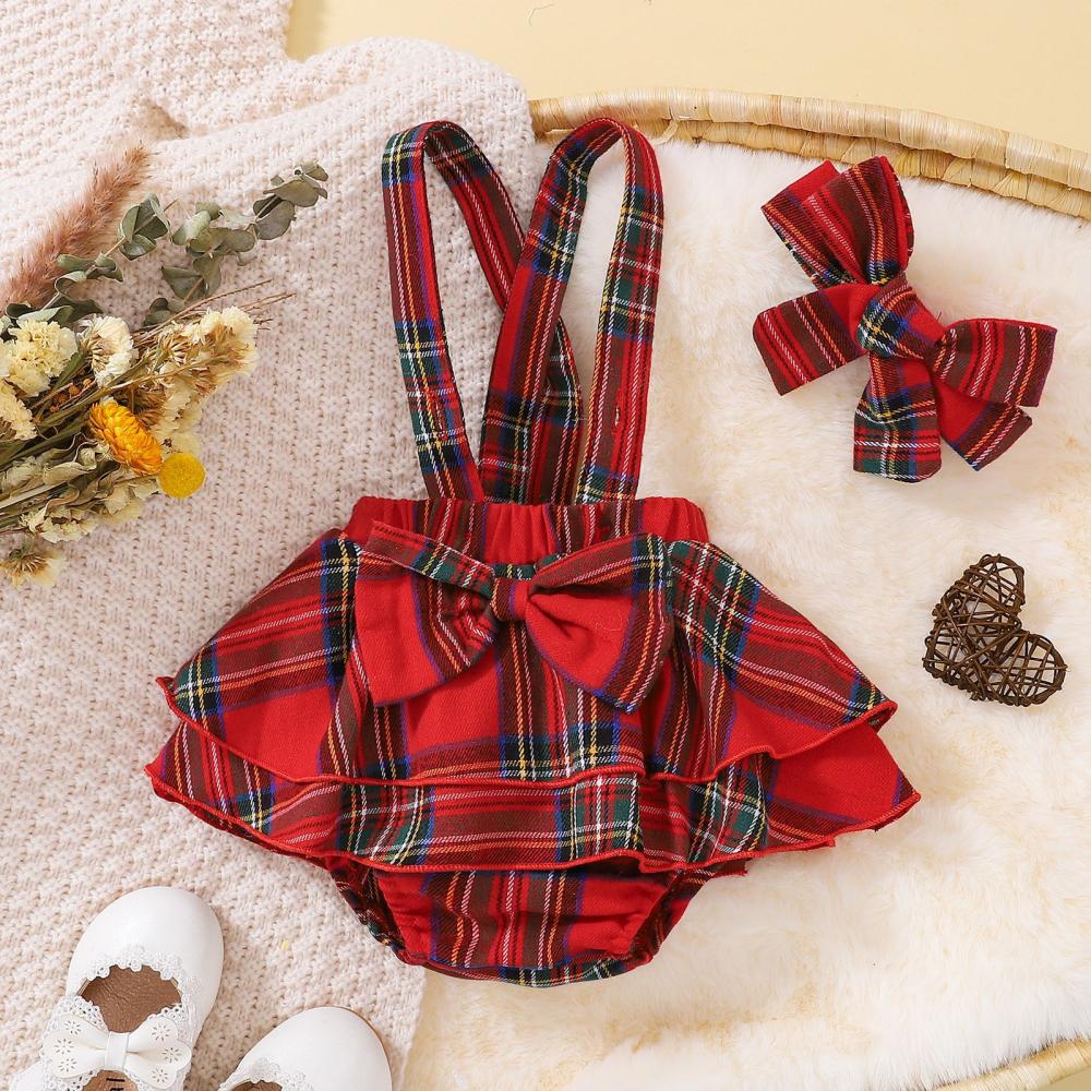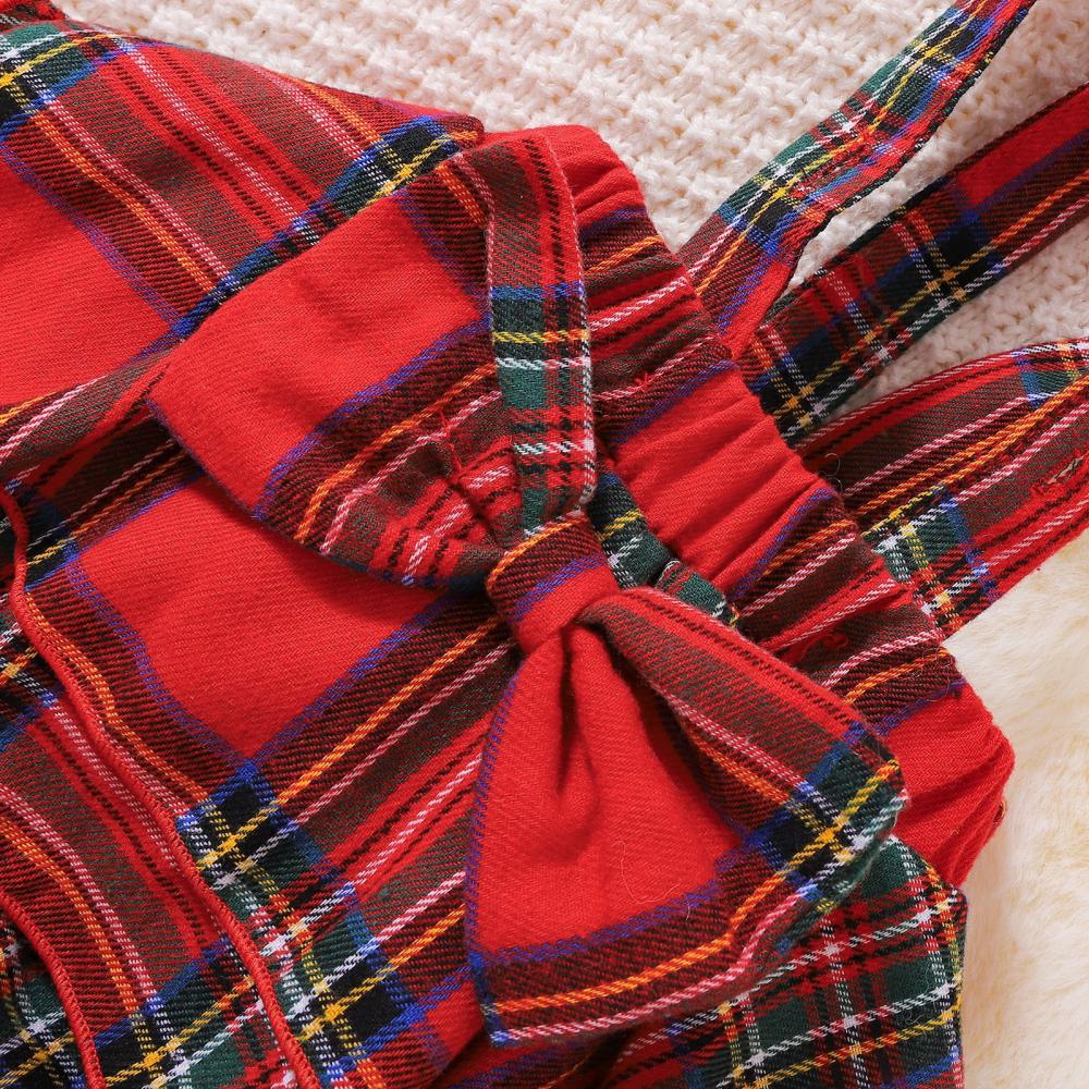 Baby Girl Christmas Cotton Pit Strip Pure Black Long Sleeve Top + Plaid Strap Romper Suit Wholesale