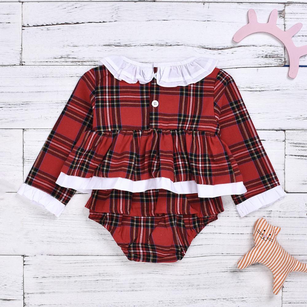 Baby Girl Spring and Autumn Long-sleeved Bow Plaid Christmas Romper Wholesale Baby Girl Clothes