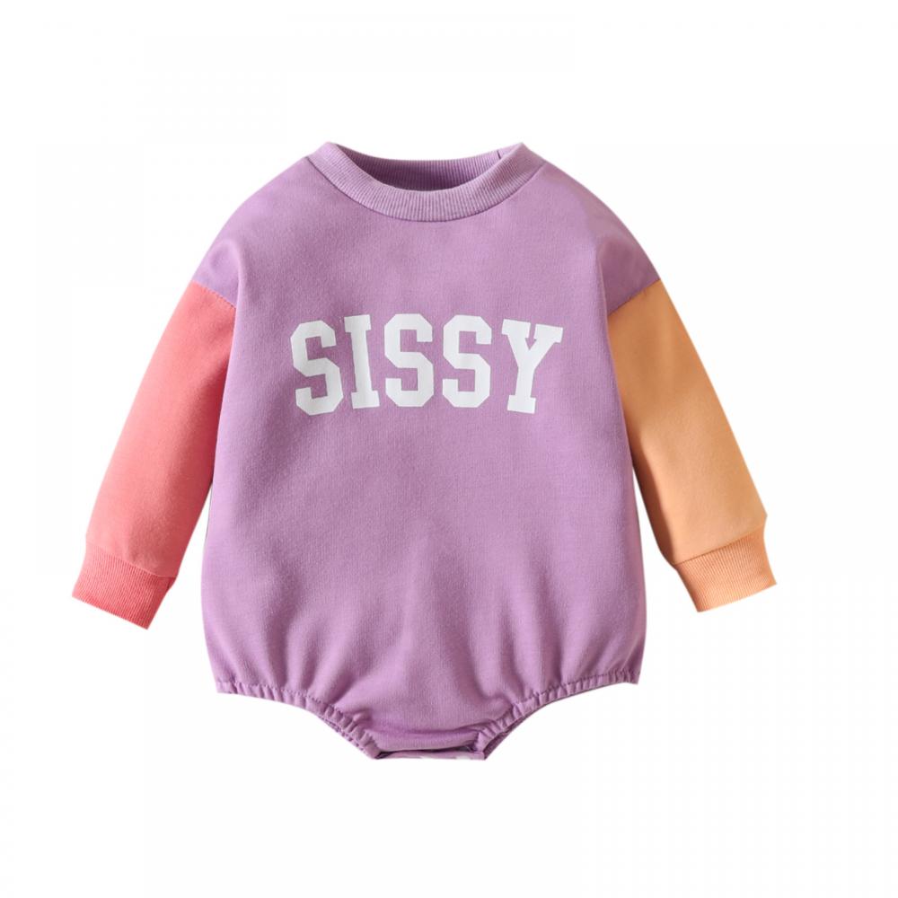 Baby Girls Autumn Letter Print Colo-block Triangle Romper Wholesale Baby Clothes