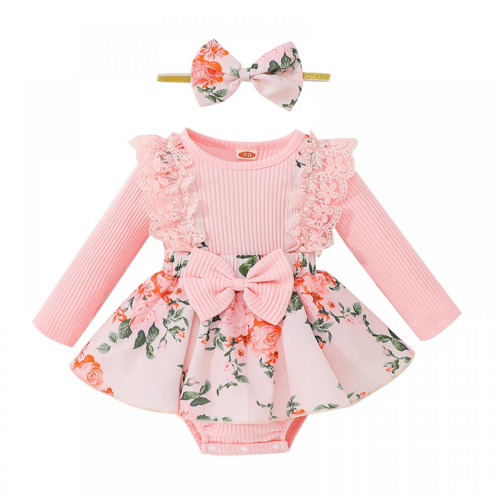 Baby Girls Autumn New Flower Print Romper Wholesale Girls Clothes
