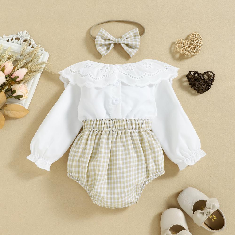 Baby Girls Lace Doll Collar Autumn Winter Long Sleeve Plaid Romper Wholesale Girls Clothes