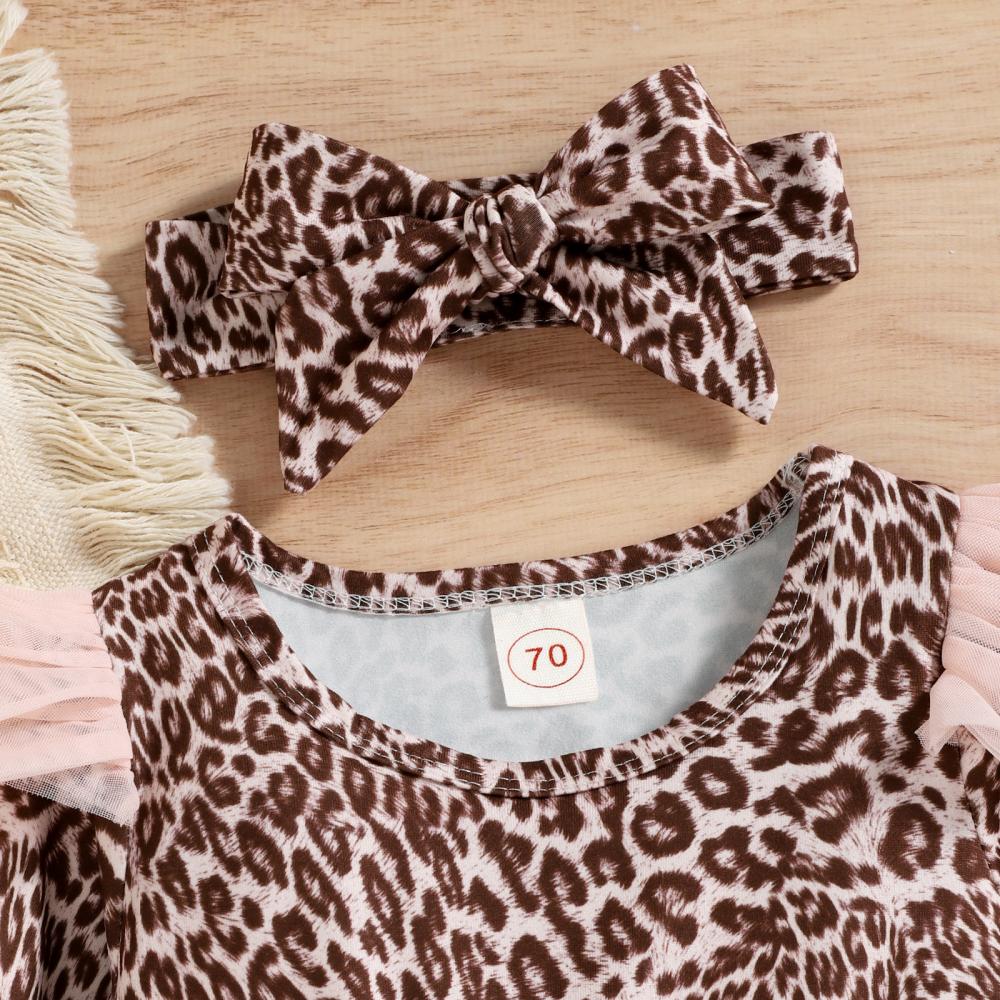 Baby Triangle Romper Autumn and Winter Girls Long Sleeve Leopard Print Mesh Skirt Baby Clothes Wholesale