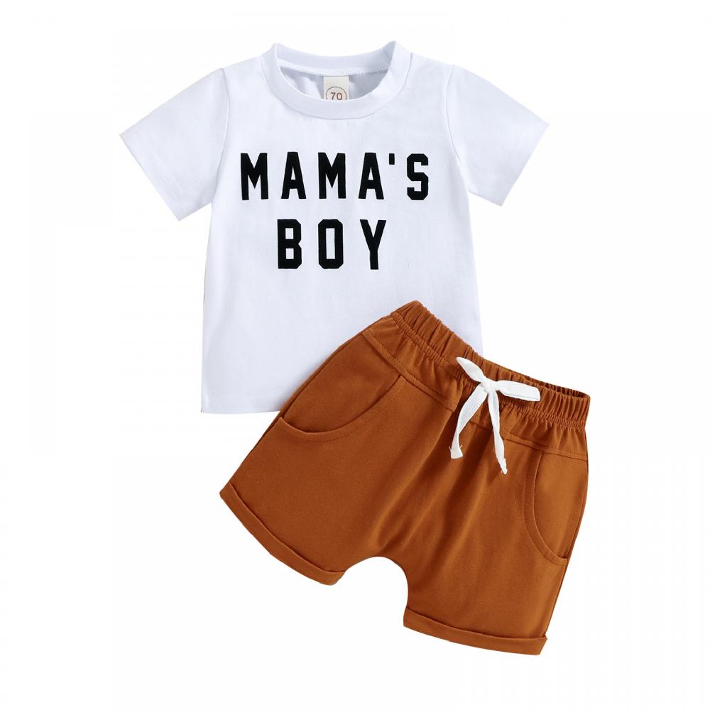Boys Alphabet Short Sleeve T-Shirt Shorts Two-Piece Set Wholesale Baby Clothes