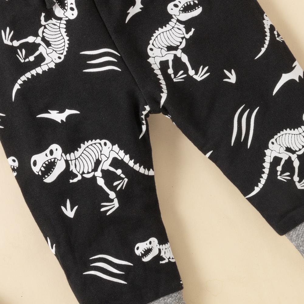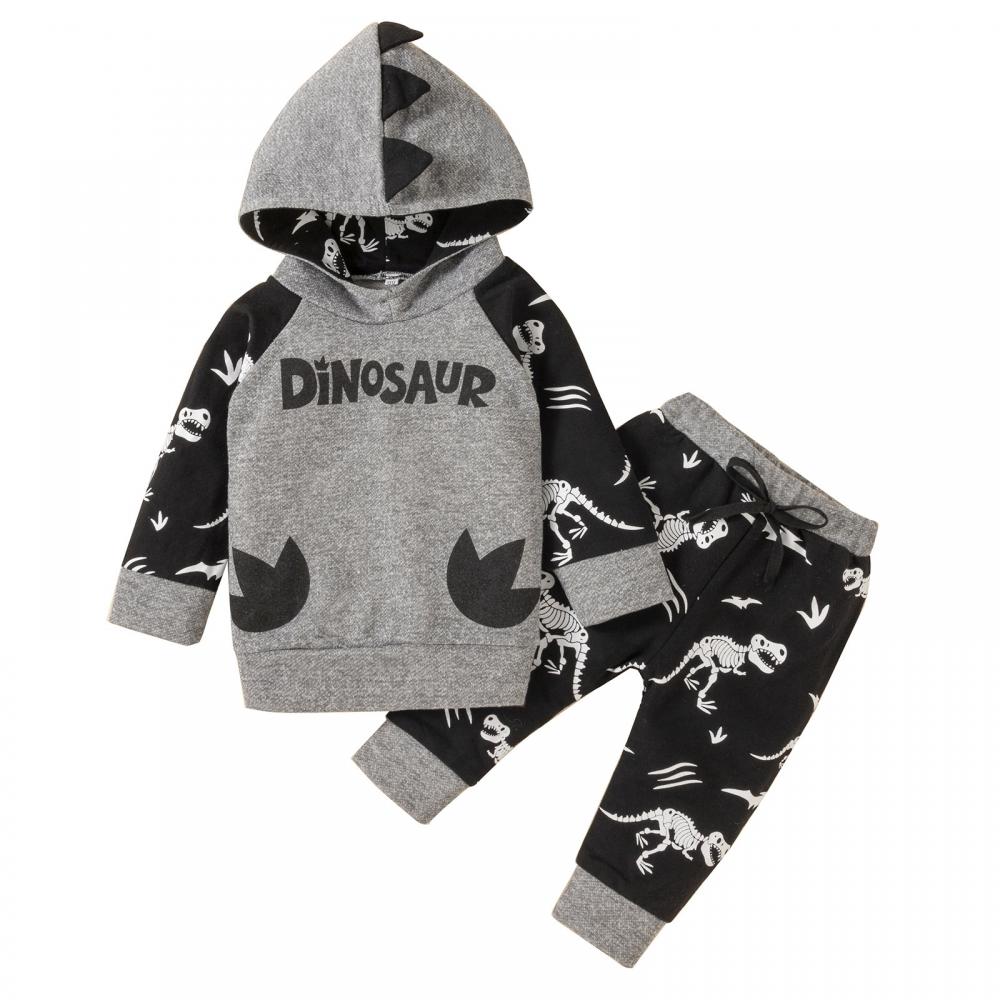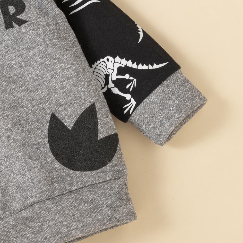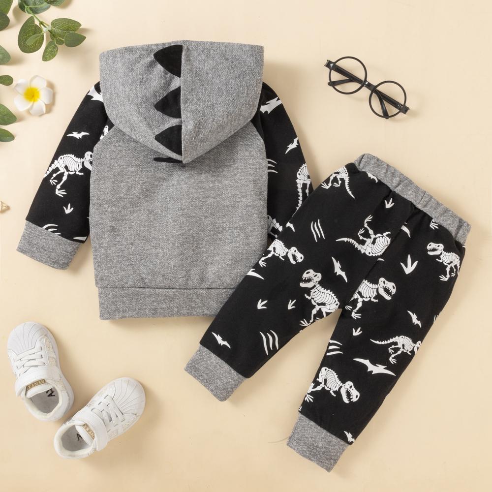 Boys Autumn Cartoon Dinosaur Print Hooded Sweater Two-Piece Set Wholesale Boys Clothes
