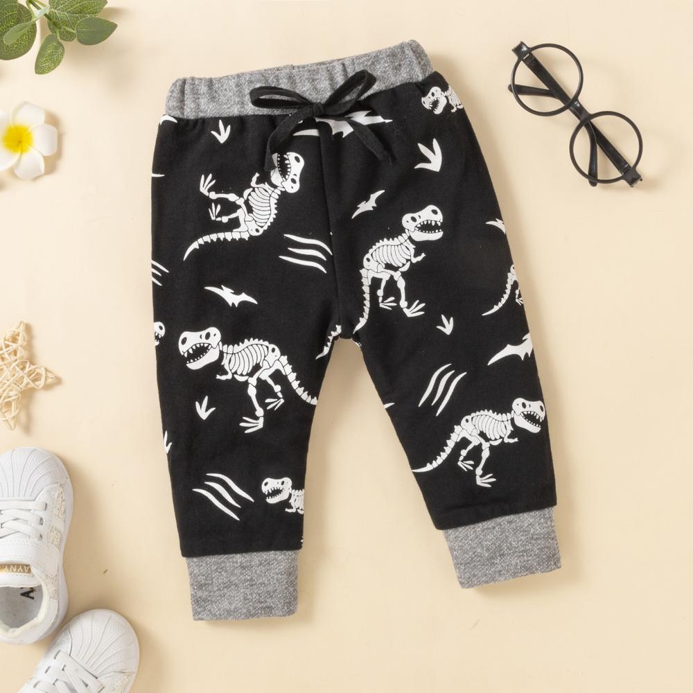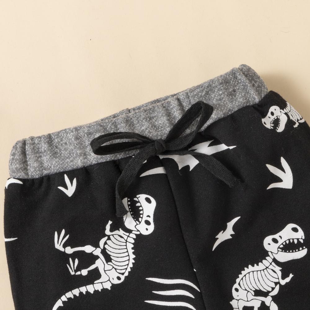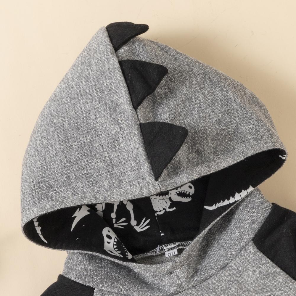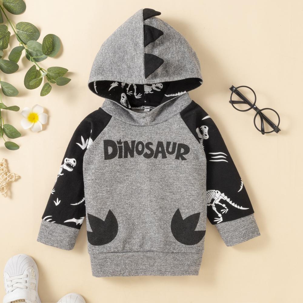 Boys Autumn Cartoon Dinosaur Print Hooded Sweater Two-Piece Set Wholesale Boys Clothes