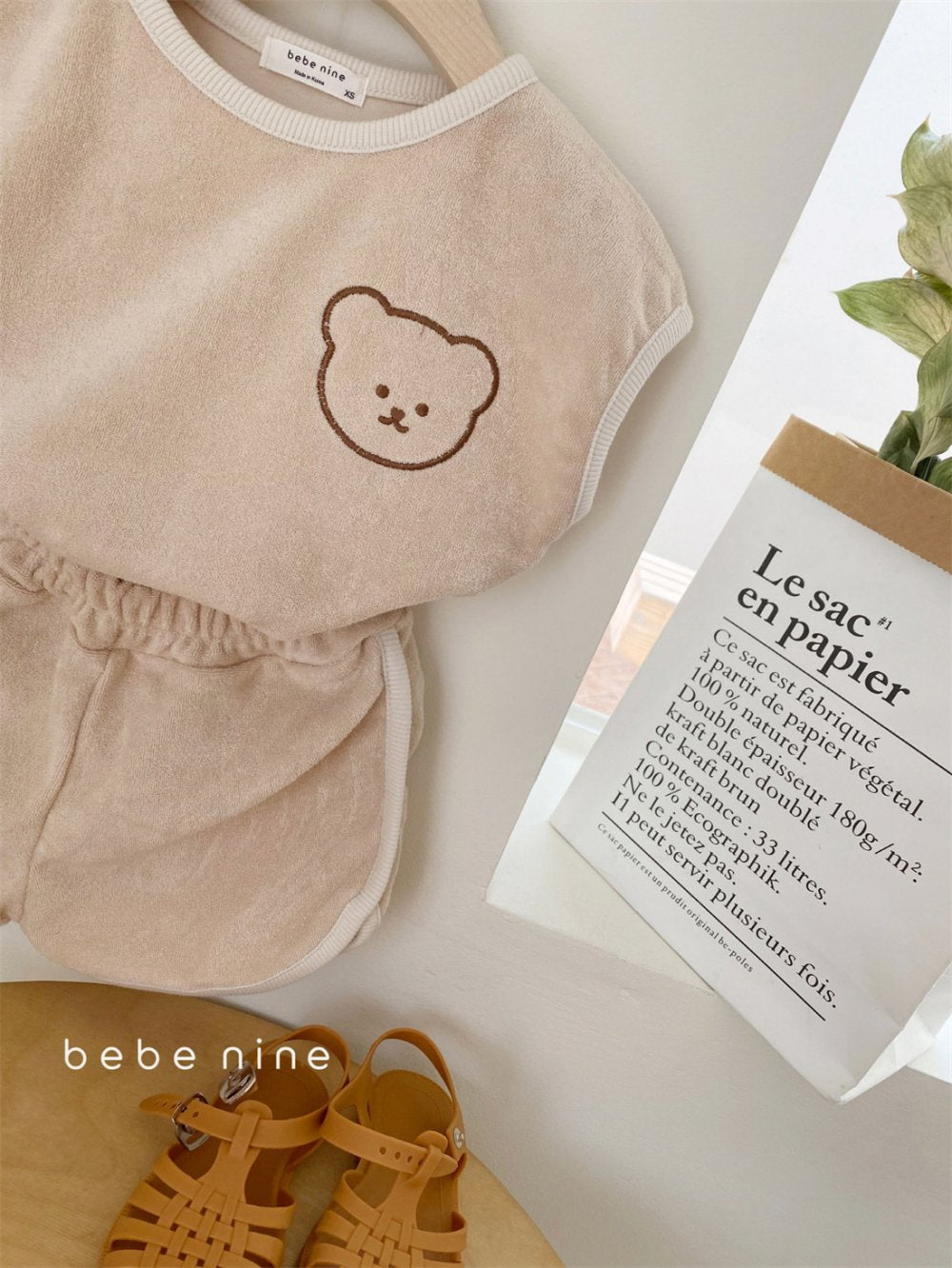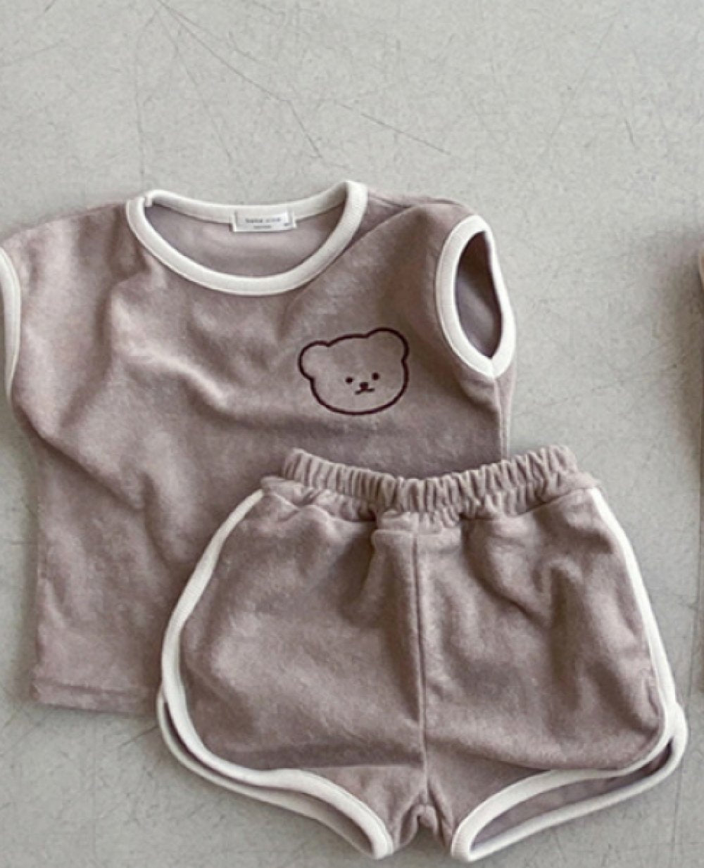 Children Bear Head Suit Sleeveless Cotton Two-piece Suit Wholesale Baby Children Clothing