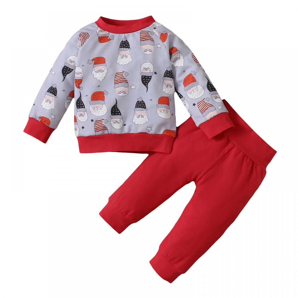 Children's Clothing Cartoon Santa Claus Print Set Wholesale Baby Boys Clothes